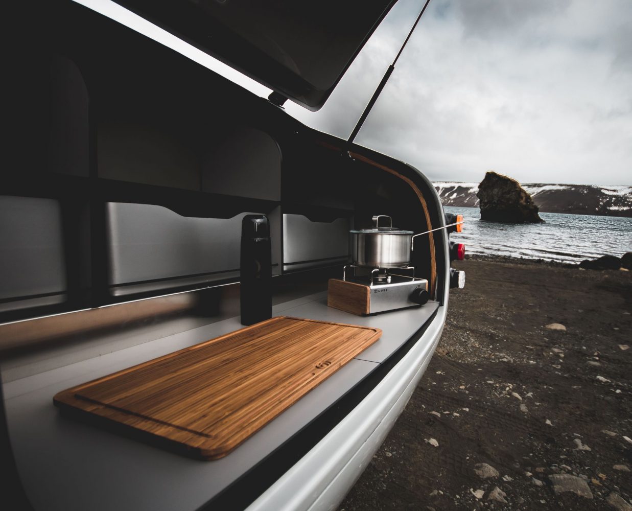 Retro yet futuristic, the Mink teardrop trailer combines minimalism with comfort. This diminutive tow-behind is small, weighing in at just 1,654-pounds, which means that it can be towed by most vehicles. And with 12 inches of clearance, it’s probably more capable than your sedan. But the Mink wasn’t designed for extreme trails. Think of it as a luxury car camping experience.