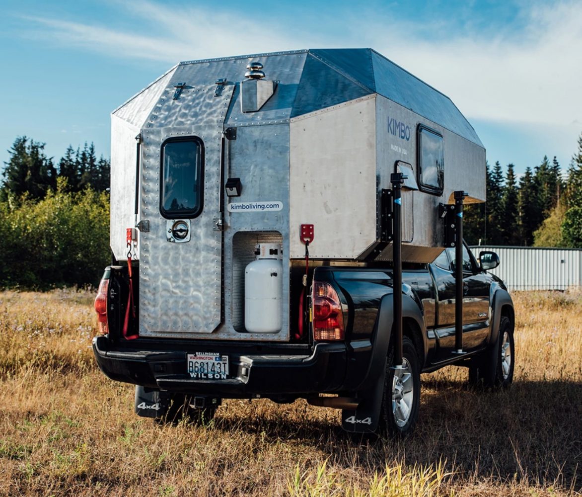 Drawing his inspiration from the USS Alabama (a nuclear submarine), Mark King, founder of Kimbo Camper, designed his first truck camper back in 2016. At that time, there was nothing on the market that perfectly met his needs as an inventor and entrepreneur, so he was motivated to create something new. His goal was simple: take what he had learned from living full time in a 19-foot Airstream trailer and create a simpler, more nimble home on wheels. The result is the Kimbo Camper, a relatively lightweight truck camper constructed from aluminum panels and ideally suited to medium- and full-sized pickup trucks.