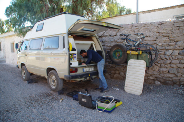 We’re both chemical engineers and quit our jobs just before our trip to South America. We are currently living back in Madrid; I’m working on clean energy research and development. When we started the trip, there were just two of us, but we returned as a family of three. Our baby was born exactly two years after we hit the road in Uruguay. We’re currently configuring the Syncro for our new crew member.
