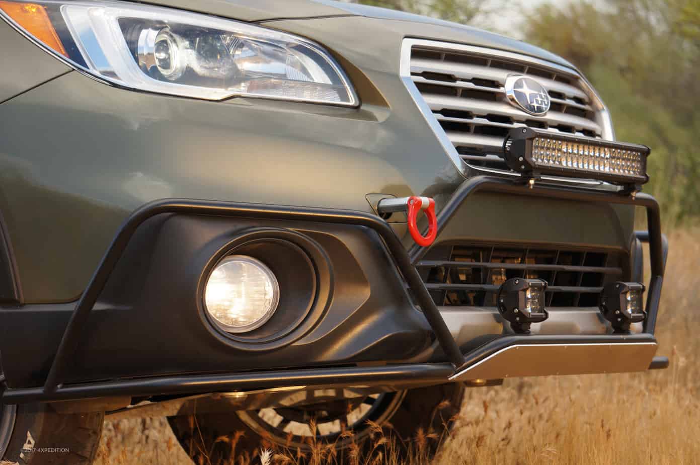 Second, the clearance of a stock Outback sits at a reasonable 8.7 inches, and with the 2-inch lift we added we are now towering at around 11 inches. This is more than adequate for the majority of trail use we selected this vehicle for. With decent suspension, satisfactory hill climb, and descent performance without low range, that was acceptable to us. The entry and departure angles aren’t that stellar, but with a bit of negotiating in deeper ravines and the aid of the XMode and MaxTrax we haven’t really seen much of a problem. We added a tow hook on the front so in the event we encounter problems we can ask a fellow overlander for help.