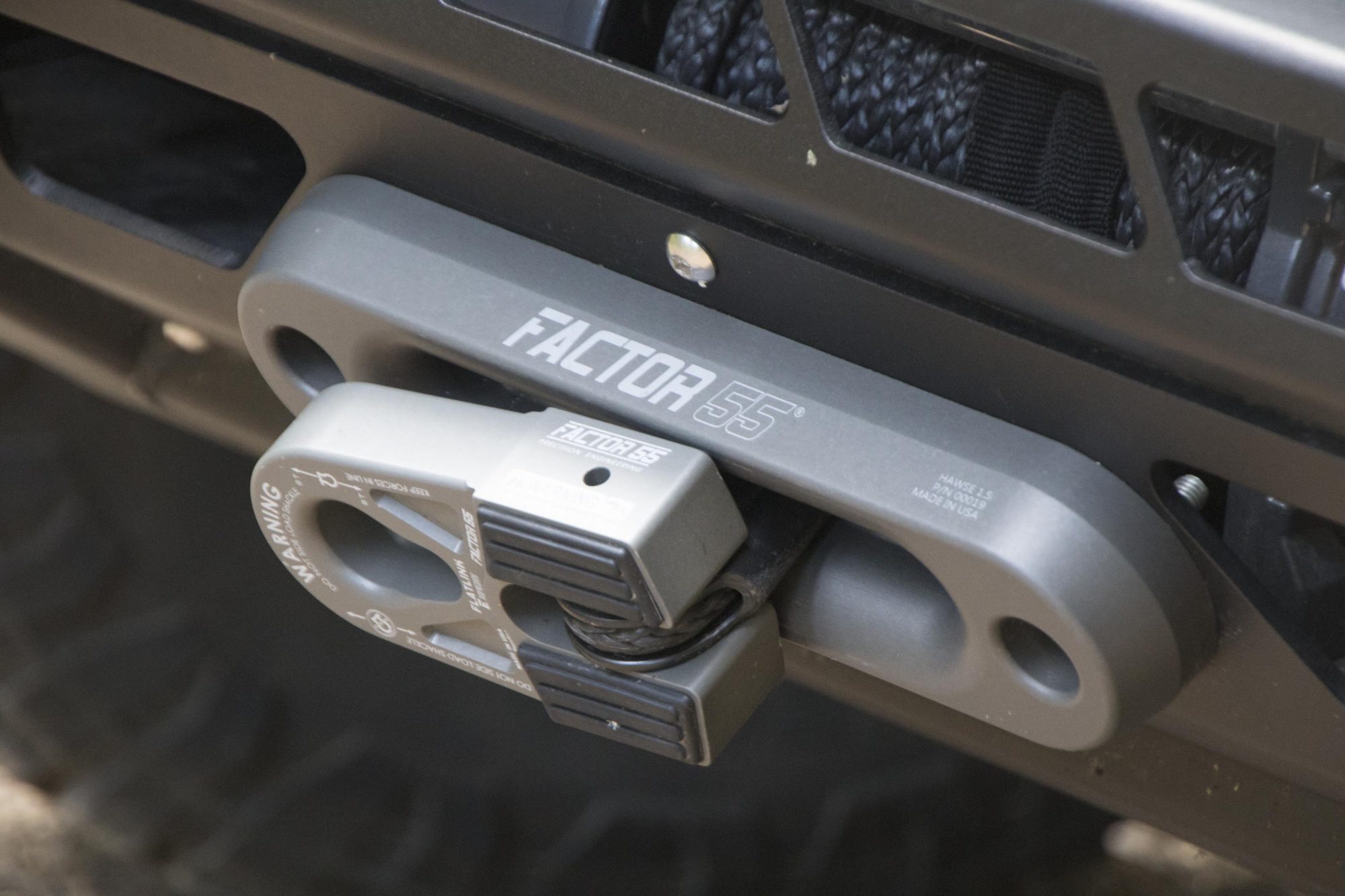 The sharp end of the truck was fitted with a low profile CBI all-alluminum bumper housing a Warn 9.5XP winch spooled with synthetic line and fitted with a Factor 55 Flatlink shackle. Additional Rigid Industries LED lights augment the already bright factory beams. The improvement to approach angles is evident and the weight of the all-aluminum bumper comes at no penalty of pounds.
