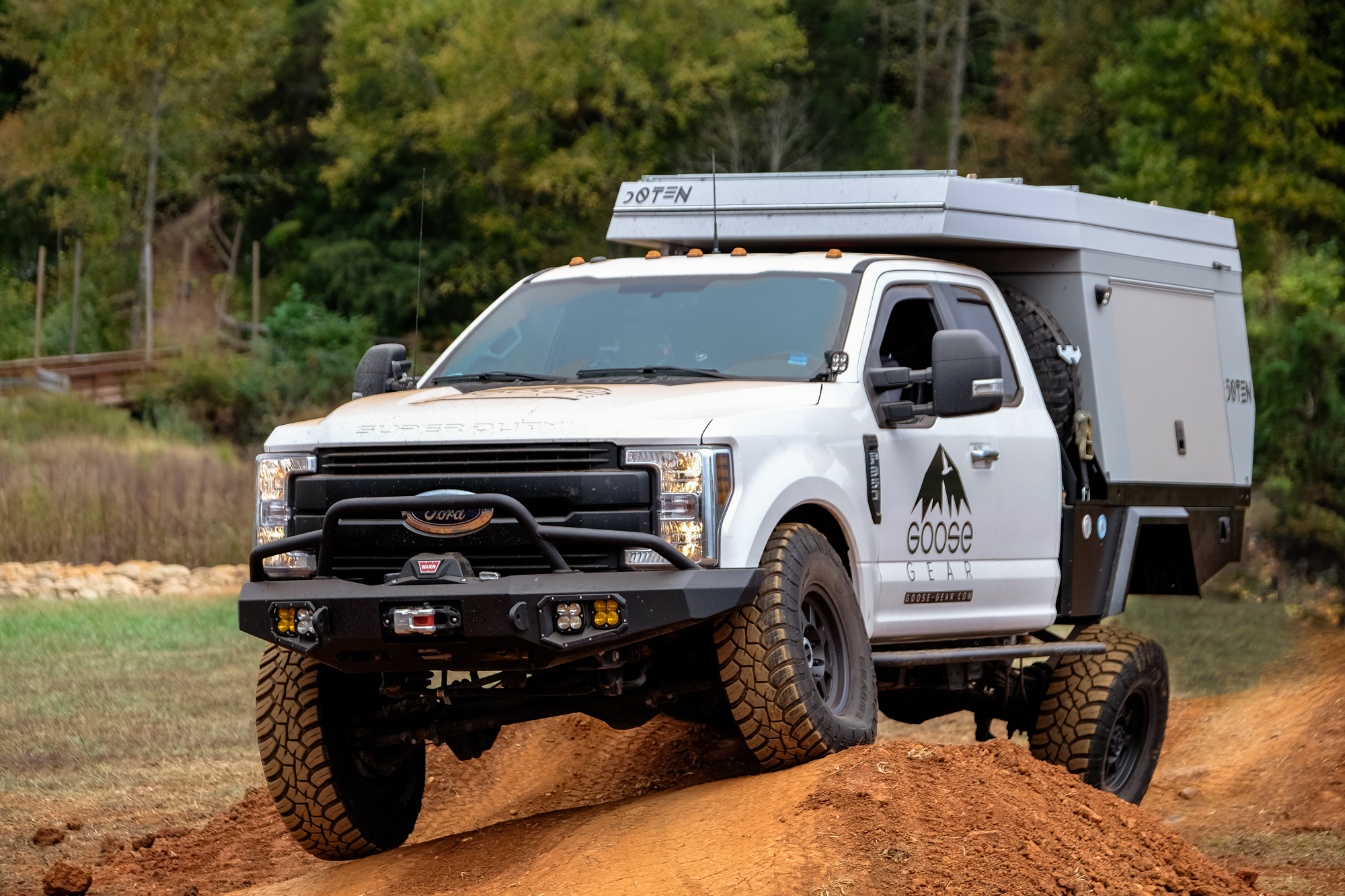 It wasn’t all that long ago that many people would have laughed at the idea of a full-size truck for overlanding. But these days, they’re all the rage, and it’s not hard to understand why. While many mid-size trucks are struggling with a lack of power and feeble payloads, their siblings offer an abundance of each. They can accommodate the large tire sizes we want with less lift, come with solid axles, and often achieve better fuel economy than smaller trucks and SUVs when modified. This is no doubt why vehicles like the AEV Prospector have become so popular of late. Today, we want to look at something a little different: an F-350 build by Goose Gear, perhaps the baddest full-size overland truck we’ve seen this year.