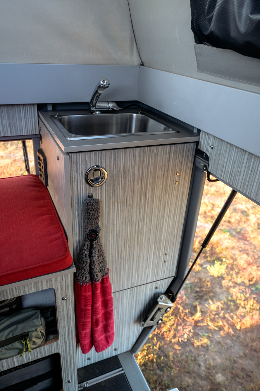 The result is a vehicle with performance as sharp as its looks—that is as happy bombing down desert roads in California as it is taking on technical terrain in Virginia. It urges you to go faster down sandy washes with confidence-inspiring handling and predictable steering responses, while soaking up big impacts in a buttery ballet of suspension travel. Its slow-speed performance is equally impressive, as the truck clambers over rocks, clears approach, departure, and breakover challenges that have defeated some Jeeps, and breezes through cross-axle moguls without hesitation. The truth is that once you’re behind the wheel, you’re so busy having fun that you’d never know you were driving a fully equipped camper, and honestly, it just doesn’t get much better than that.