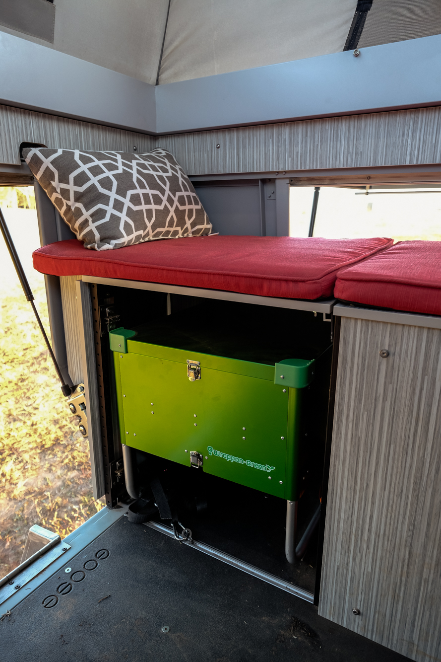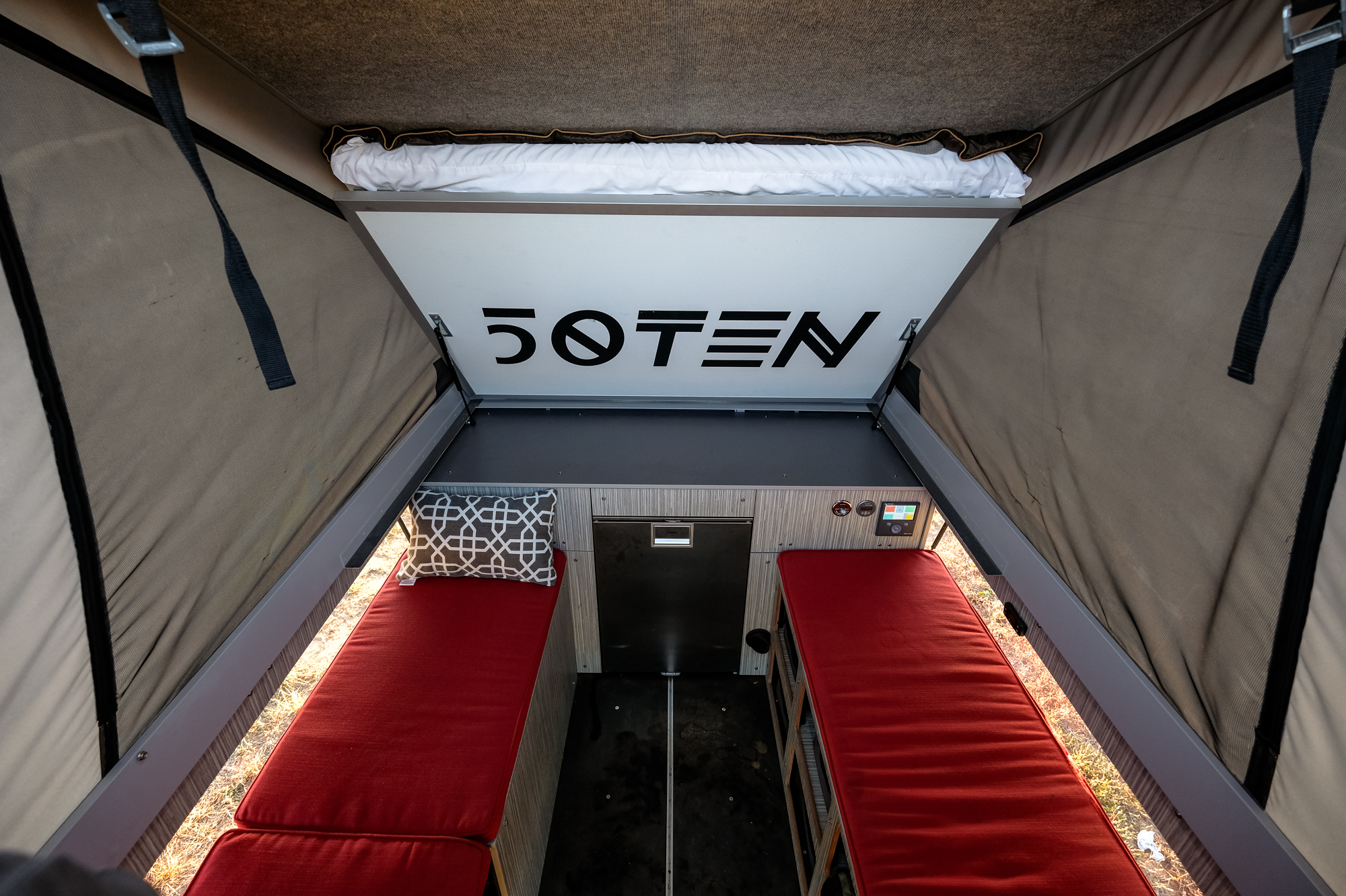 Obviously, one of the biggest reasons to have a camper on your truck is going to be getting a good night’s sleep, so they didn’t skimp on the bed. The FiftyTen carries one of the largest beds in its class, and it’s far from just a foam pad. It touts a German-made Froli suspension system paired with a Froli mattress, widely regarded as one of the best sleep systems for campers in the world. It’s honestly more comfortable than my bed at home,” Brian joked, but I’m pretty sure he’s serious.