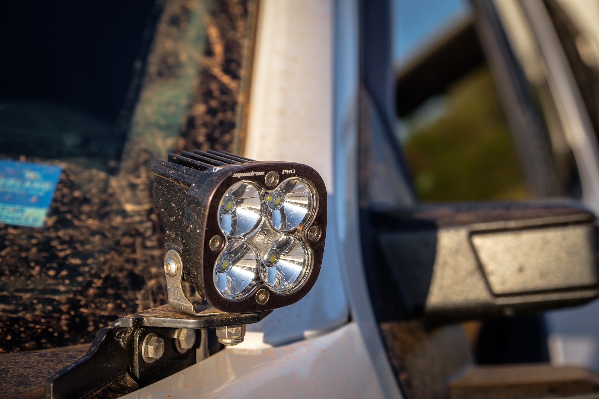 The front end is protected by a Warn bumper which also improves the approach angle and is equipped with a 12,000-pound winch for recovery. Brian notes that was a bit of a mixup, though, and that the Warn one is being swapped to a proper 16,500-pound model to match the truck’s weight soon. The bumper also sports four Baja Designs XL80 lights that complement the two ditch lights above the hood.