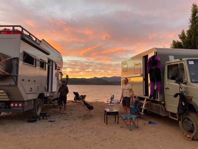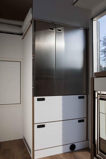 There’s nothing major that we’d change. We have an outside shower next to the entry door, which isn’t ideal as it creates a pool of water that we then walk through to get in. Therefore, we’d like to put an additional shower on the opposite side of the truck. I also wonder sometimes whether I should’ve gone for a fixed LPG gas tank, usually when I’m struggling to resupply. However, we have three 5-kilogram Campingaz canisters, and each one is enough for five to six weeks on the road (three to four months in total), so it’s not a big issue.