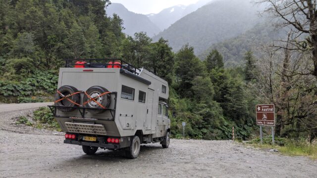 We have four sand ladders, which are kept on the rear of the Vario and have been used a few times on soft mud/sand. I’ll be fitting a winch the next time we stop travelling as I’ve only been stuck twice. On both occasions, it would’ve gotten me out of the situation without requiring the help of another vehicle. The Vario was fitted stock with a compressor, so we’ve tapped into the system and have connection points on either side of the vehicle. On the highway, we run about 7.5 bar on the front axle and 8 bar on the rear, and have been as low as 1.5-2 bar in places like Chile. We carry two spare tires; one is fitted to a rim, the other is not. We decided to go for solid steel wheels rather than split rims to keep things simple. Instead, if we get a puncture, we have a complete wheel to replace it. Then in the next town, we replace the knackered tire with our spare and simply order a new spare tire two weeks down the line, or wherever is convenient.