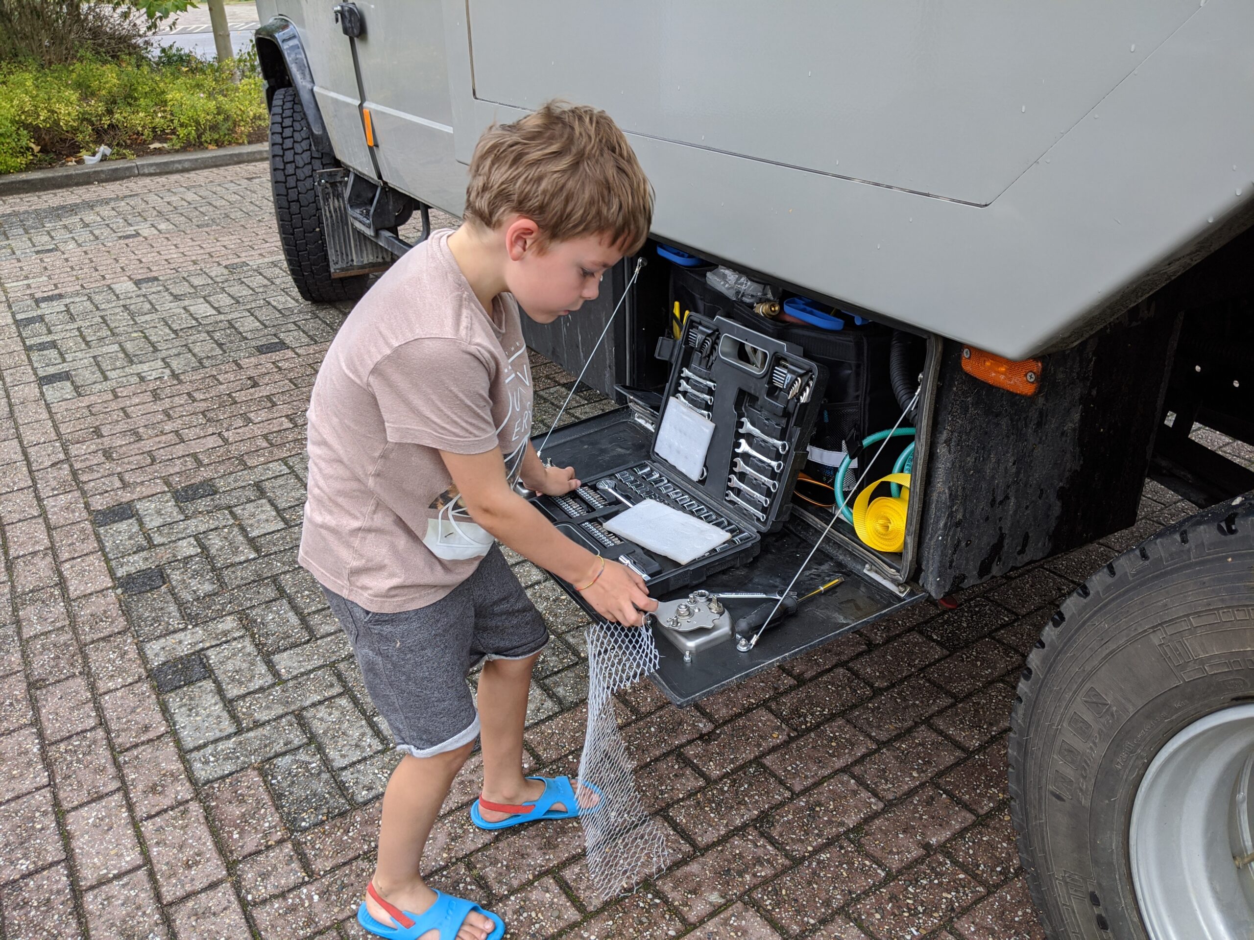 The habitation pod was built by Twiga Travel Cars (twigatravelcars.nl) based in the Netherlands; it’s a small family outfit with around eight people working there. I did speak to some of the bigger German overland outfitters but didn’t get the same vibe. Twiga was really nice to work with, and after a lot of research, we got stuck in. We jointly worked on the layout based on our experiences of living on the road as a family in conjunction with their expertise in building overland vehicles.