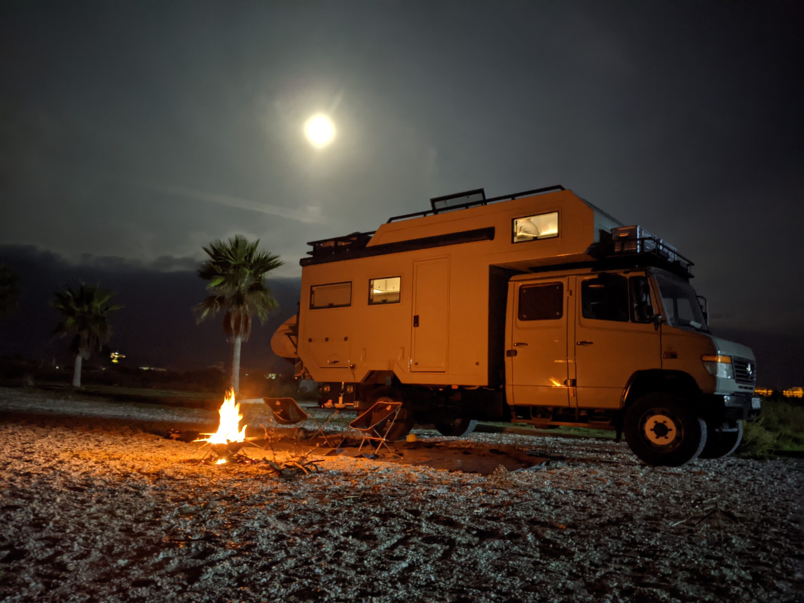 We’re a family of four: myself (Nathan); wife, Laura; two children, aged seven and nine, and we’ve been living on the road for approximately two years. We previously had a conventional motorhome, which the guys who built our current rig refer to as Tupperwares. My wife and I travelled a lot when we were younger, backpacking and that kind of thing. In terms of vehicle travel, my parents had a converted Bedford ambulance that we drove to Yugoslavia one summer, so I think that planted the seed. Five years ago, we decided to go away for six weeks during the kids’ summer break in our previous motorhome, largely staying at campsites, and we absolutely loved the freedom it granted. The following year we took our kids out of school a month earlier, which allowed us to travel for 10 weeks, but it still wasn’t enough. However, it showed us that we could live on the road without killing one another and that we worked well as a team. At the time, I was still working for a software business that I sold a few years ago, but after the trip, I decided to quit, and my wife similarly took a step back from her company. It was at this time that I discovered the world of overlanding and became completely hooked. Hence, before I knew it, I was on a plane to buy a Mercedes Vario 4×4.