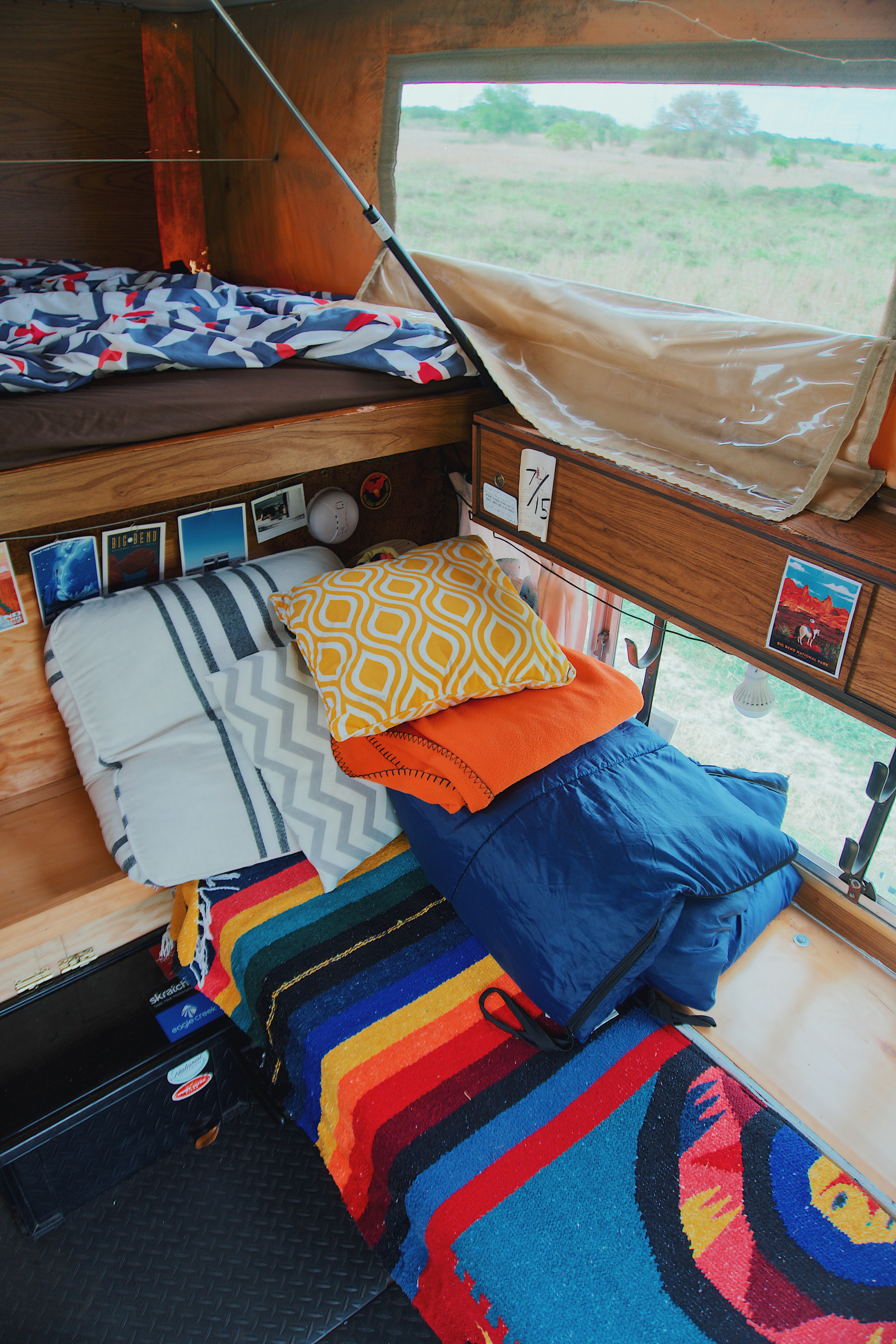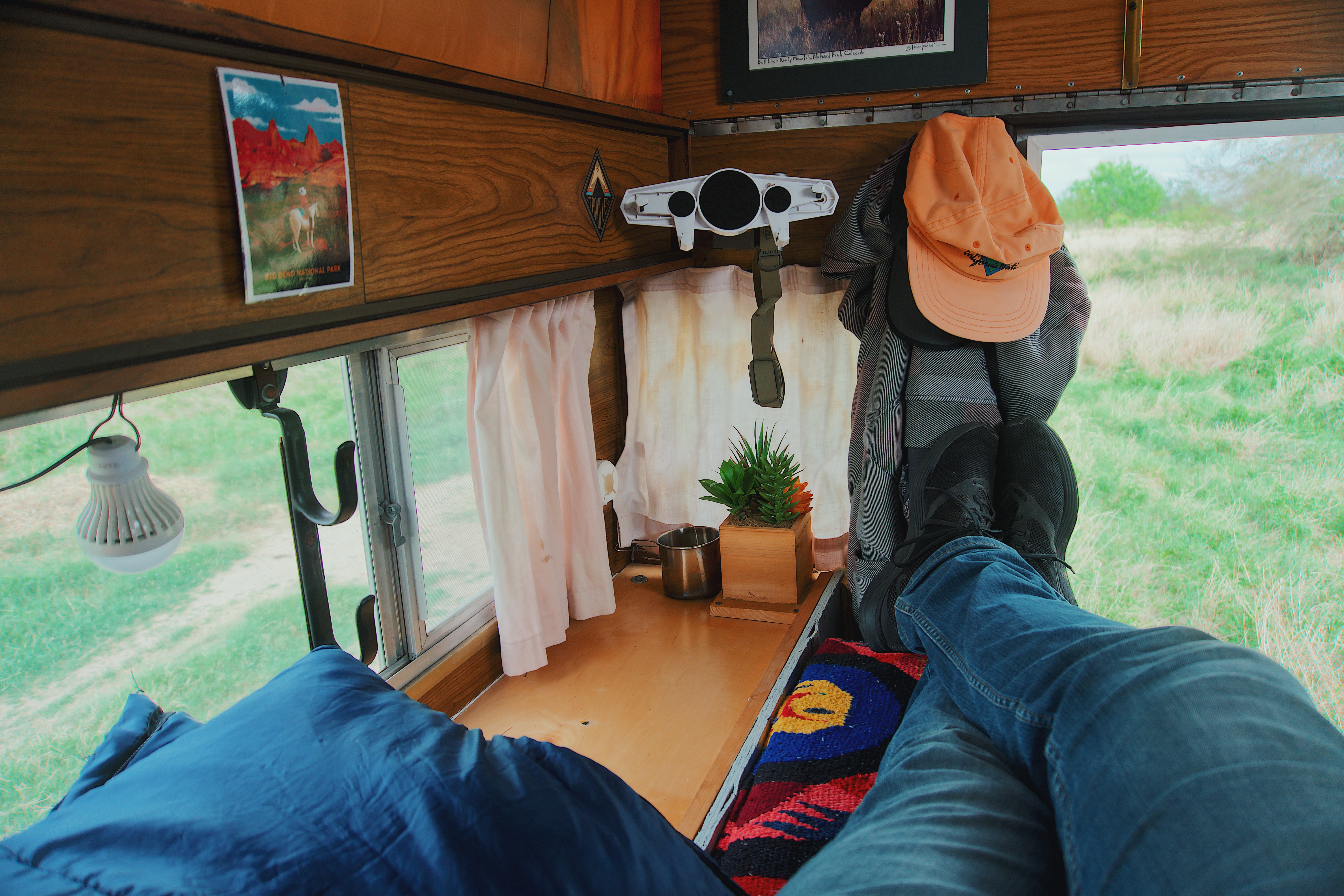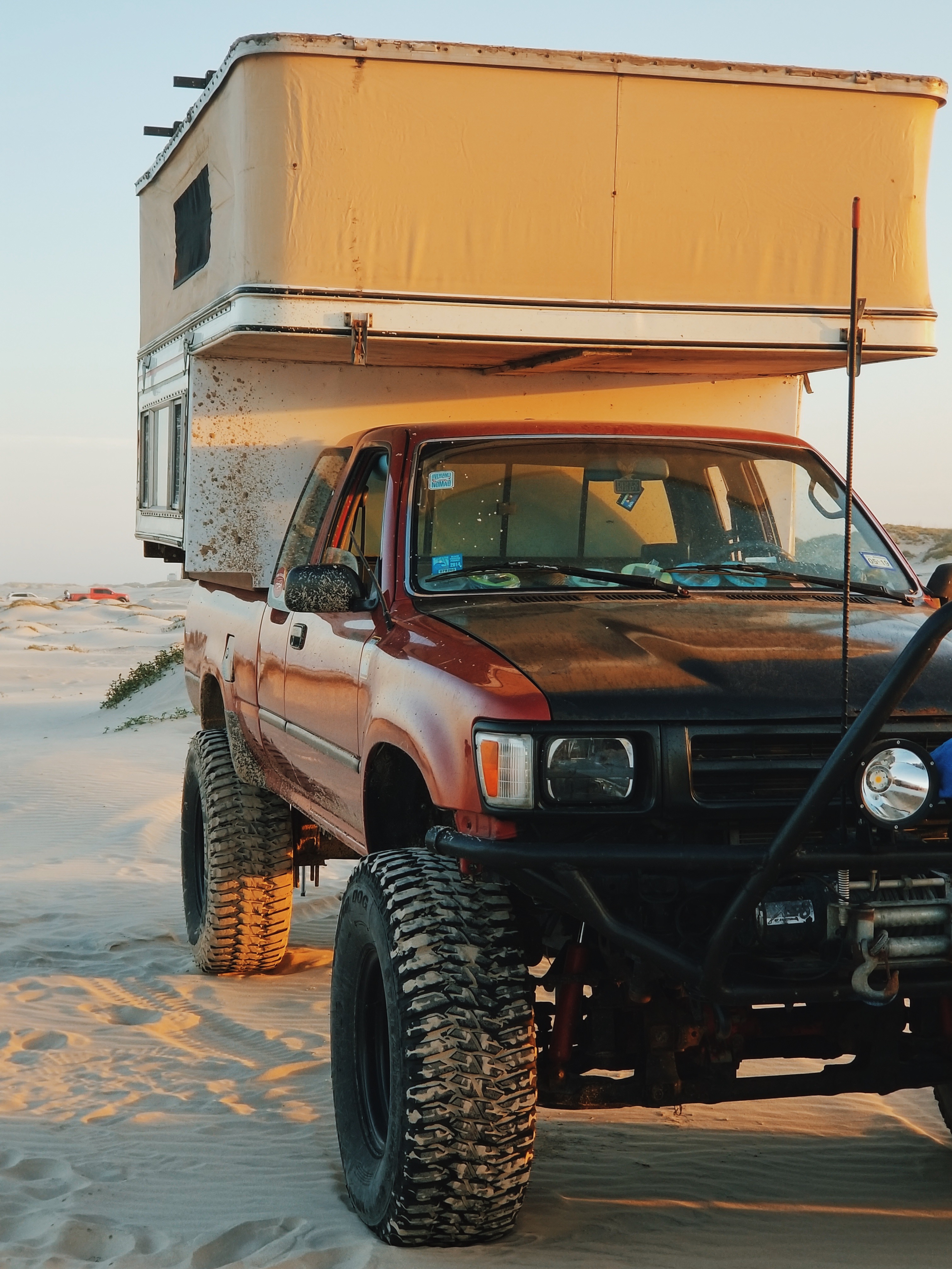 Two years ago, I was browsing the Texas Overland pages when a rather rare and promising camper popped up, a 1981 Four-Wheel Camper designed specifically for the Ford Bronco. Obviously, my Toyota Pickup wasn’t a Bronco, but I couldn’t help but fall in love with it, so I pulled the trigger. The modifications to make it fit the bed of the pickup began shortly after and included adding C-channel bars on the sides and front to make up for the height difference. I had to close up the wall that would have led to the Bronco’s cabin by adding plywood and a white aluminum wall on the outside, as well as perform a myriad of other small changes. In the end, though, it was exactly what I had hoped for, and was perfect for my many trips around Texas.