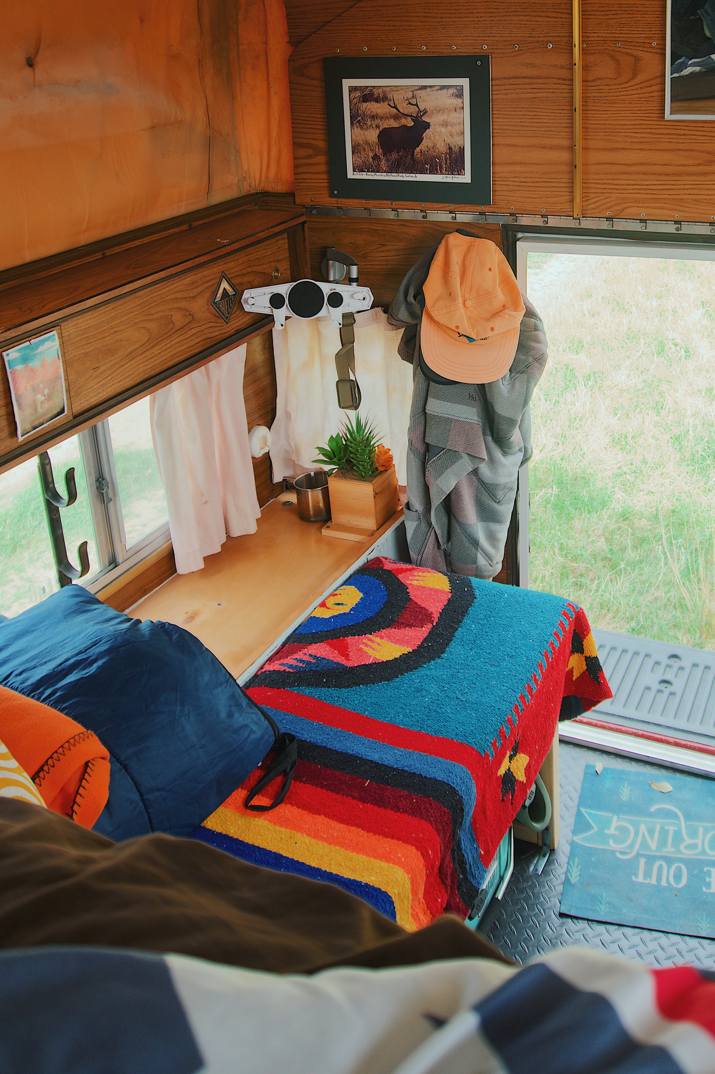 - Sleeping bag, blankets, and pillow