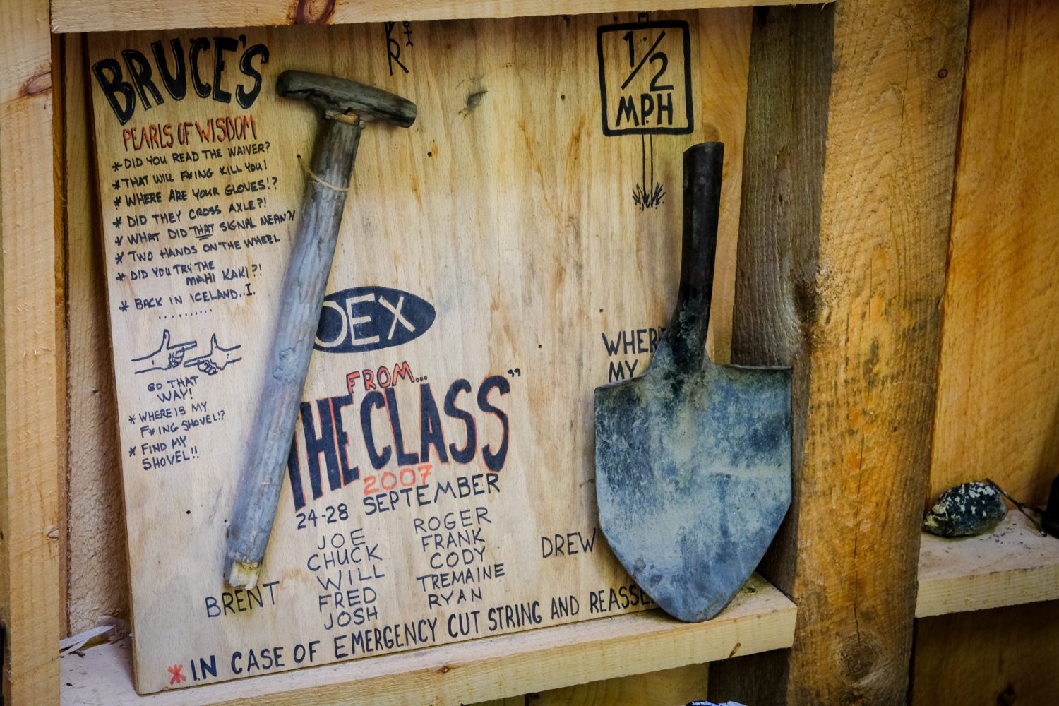 When I stepped into the small red barn nestled in the woods near Hadlyme, I wasn’t really sure what to expect. A model four-wheel drive sat by a rock on a table, doors and body panels from various unimportable vehicles lay stashed in the back, and a big Overland Experts banner hung on the wall. What stood out most were the handmade plaques and signs—mementos given to OEX by former students who had bonded with the staff and left with a deep appreciation for their newfound abilities. The whole place felt a little like a clubhouse, and I definitely wanted to join.