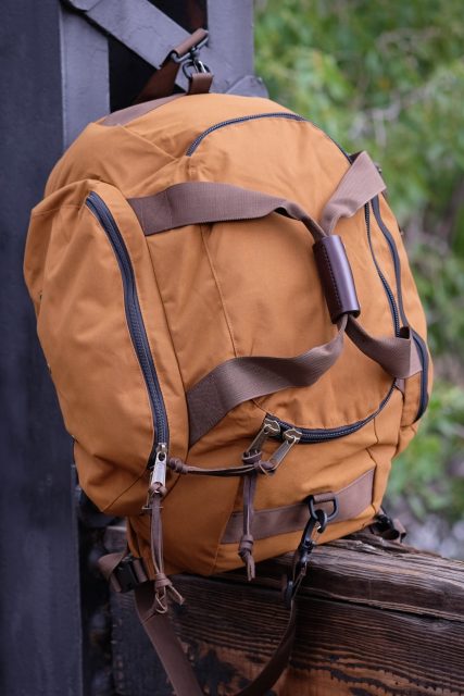 A highly versatile and unique design, the 40-liter hauler melds the better attributes of a small travel duffle with those of a traditional field pack. Modern additions include a padded laptop compartment accessible from the outside, and a somewhat unusual nylon expander pocket. That pouch, made of waterproof fabric, can be used within the bag’s main compartment to separate wet or dirty items from the rest of the duffle’s contents. It can also be inverted outside the side pocket to increase storage volume by roughly 6 liters. In that configuration, it’s a little awkward, but I can see the benefit and added versatility.