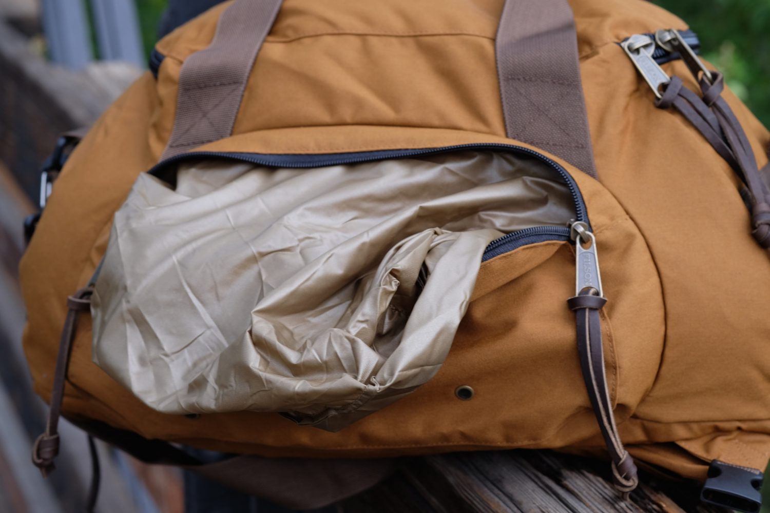 Made of 600-denier ballistic nylon instead of more expensive heavy canvas, the new Filson Duffle Pack clocks in at just $245. Small hints of bridle leather are used in the handle and zipper pulls with the overall aesthetic remaining true to the rest of the Filson catalog. The first thing I noticed about the new bag is the suppleness of the nylon and the surprisingly low weight of the total package.