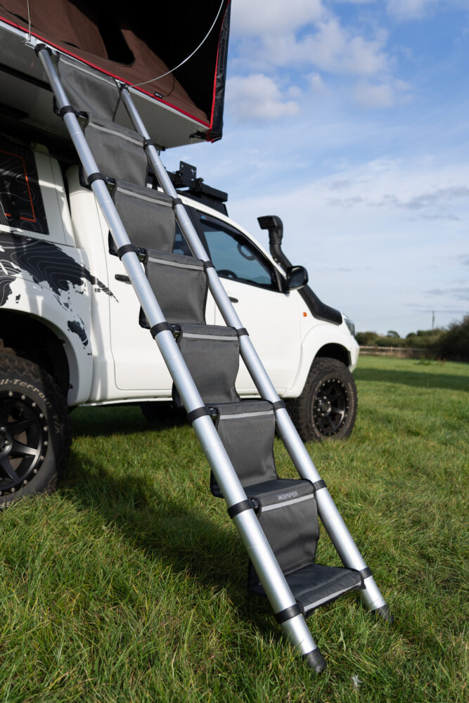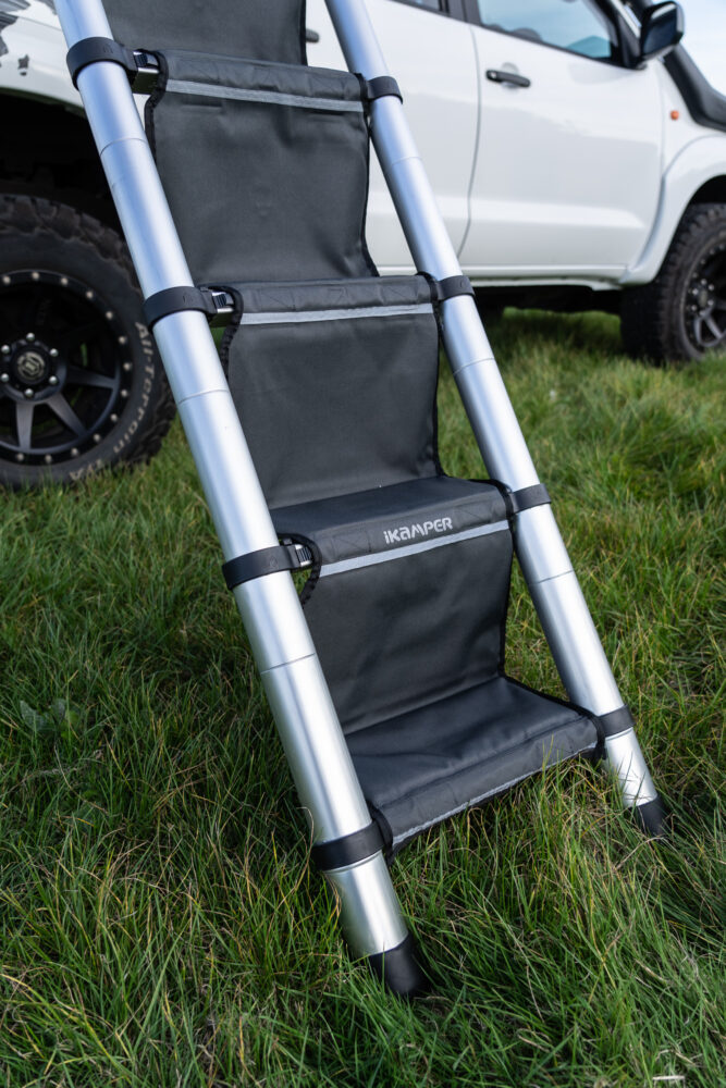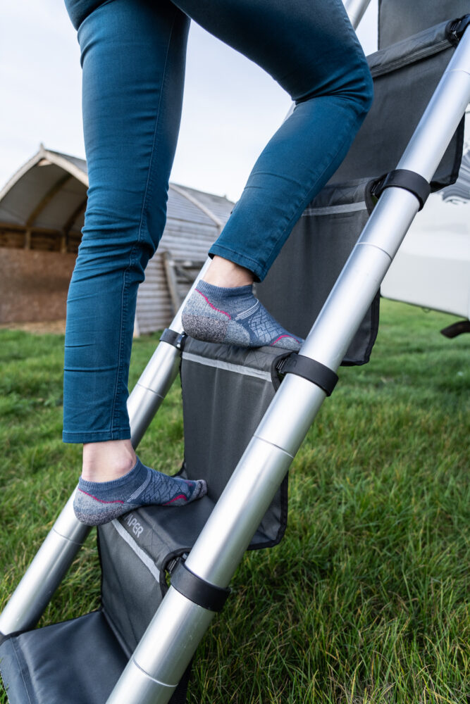The HC (High Comfort) ladder steps take glamping from good to great. What I initially thought was perhaps an unnecessary nice-to-have has become an essential accessory to my SkyCamp ensemble. At 1000-millimetre UV/PU coated 900 Denier fabric, every step up and down the ladder has become soft, plush, and extremely comfortable. Undeniably, it makes entry to and exit from the rooftop tent infinitely safer, whether you’ve got excitable little kids that run wild in socks, have enjoyed one too many glasses of your favourite tipple, require any special needs, or relish the peace of mind of being safer with a more secure footing up and down camping ladders.
