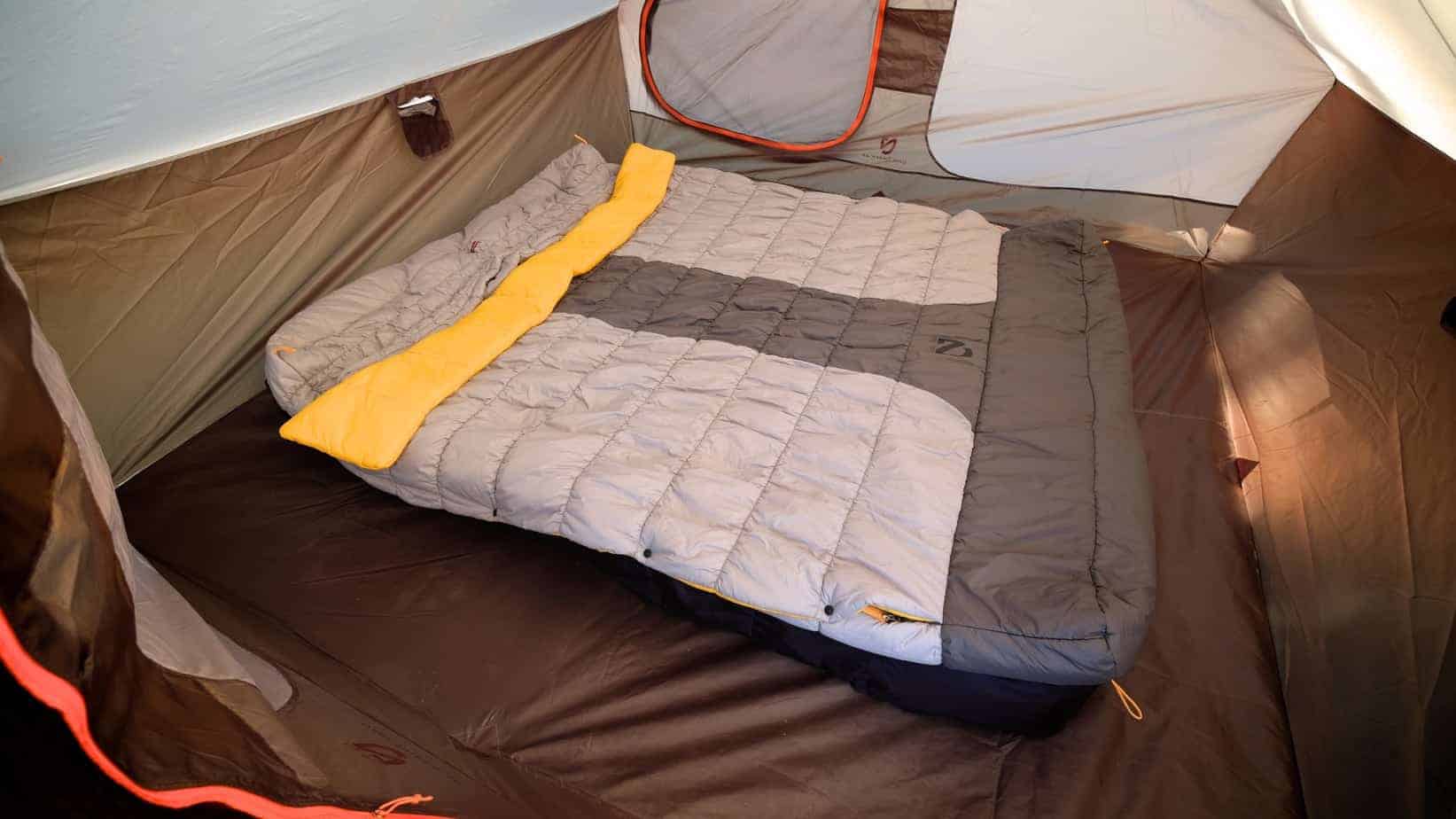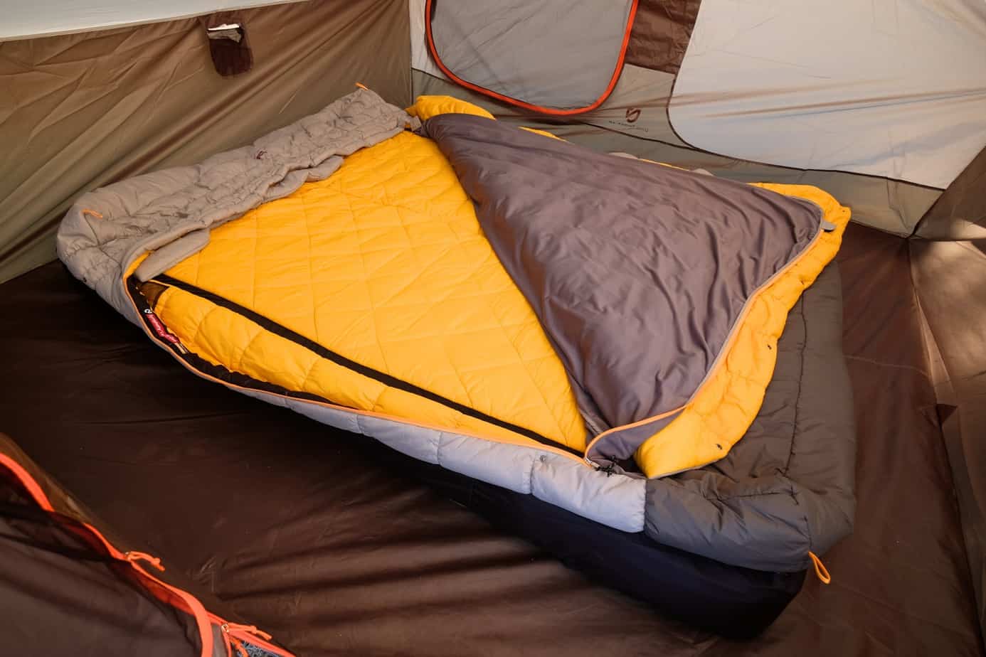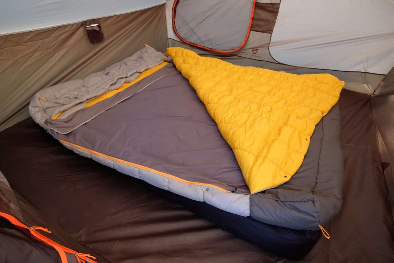 The comforter is attached to the foot of the bag and secured along the sides with a series of snaps, which I found helpful when retaining my half of the comforter from my wife who is always trying to steal more than her fair share. Just like your bed at home, one sleeper can snuggle up deep under the blankets while the other can pull it down or swing a leg out to cool off.