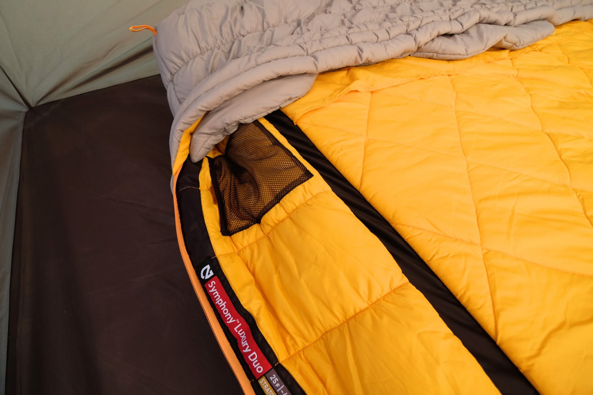 Like all Nemo products, the Symphony is festooned with additional details like dual mesh pockets inside the bag for stashing headlamps, chapstick, or other nighttime essentials. The lower pillow top layer includes two large pouches used to secure pillows, or filled with other items to boost your pillow height. The footbox is even covered in waterproof OSMO fabric as the lower portion of any bag is prone to touch wet tent walls.