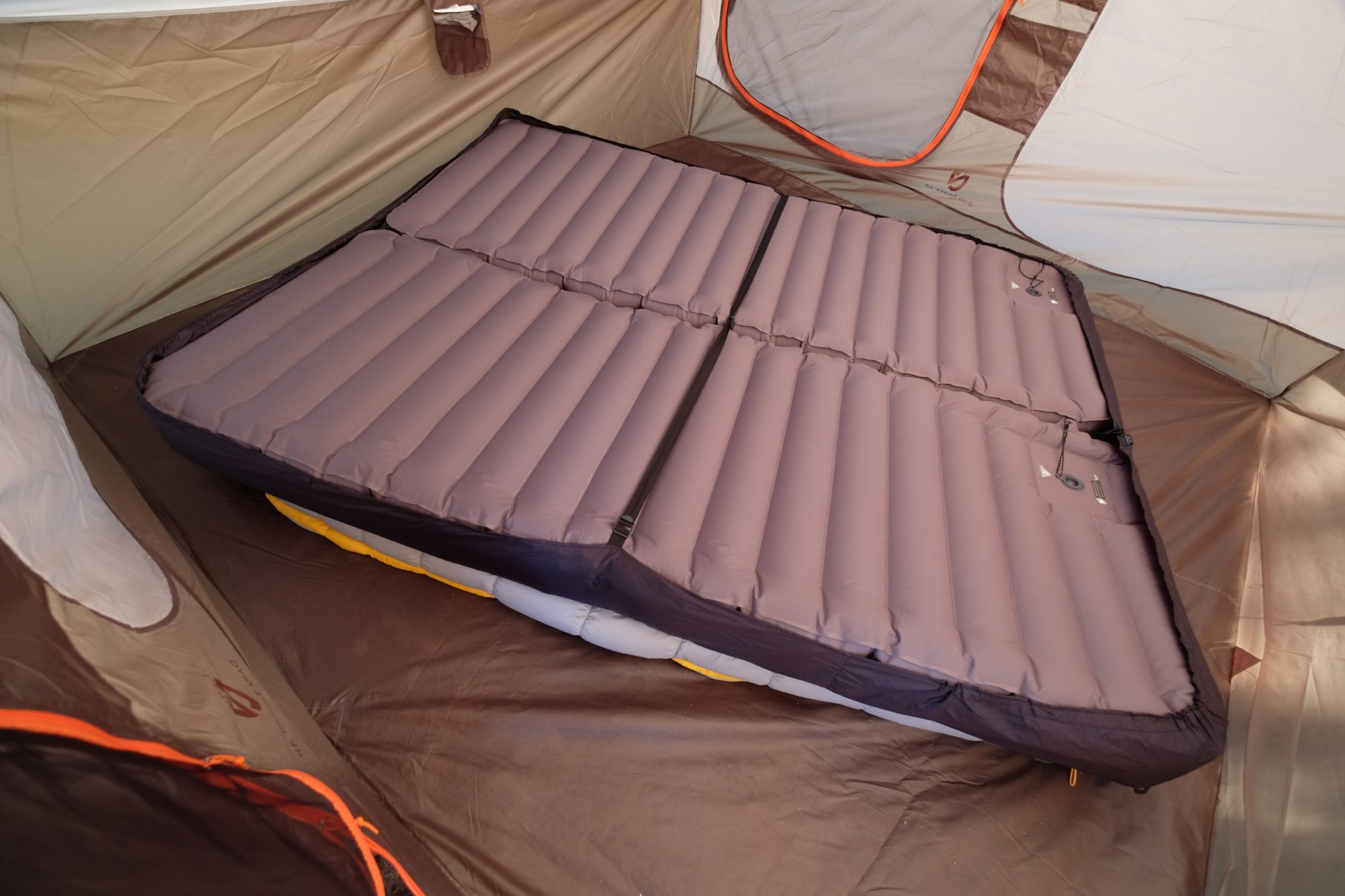 Available in both single and double-person sizes, I elected to evaluate the Symphony Luxury Duo with its gratuitous real estate large enough for two sprawling sleepers. The foundation of the system is a pair of Nemo Nomad Insulated Sleeping Pads. If you stumbled upon my Mother of All Sleeping Pad Reviews, you know I tapped the Nomad as the best of the bunch. Each Nomad is 80-inches long, 30-inches wide, and a whopping 6-inches thick. Combined they offer the same area as a standard queen-size bed. With vertical sidewalls and latitudinal baffles, the Nomad in both insulated and uninsulated versions are sublimely comfortable.