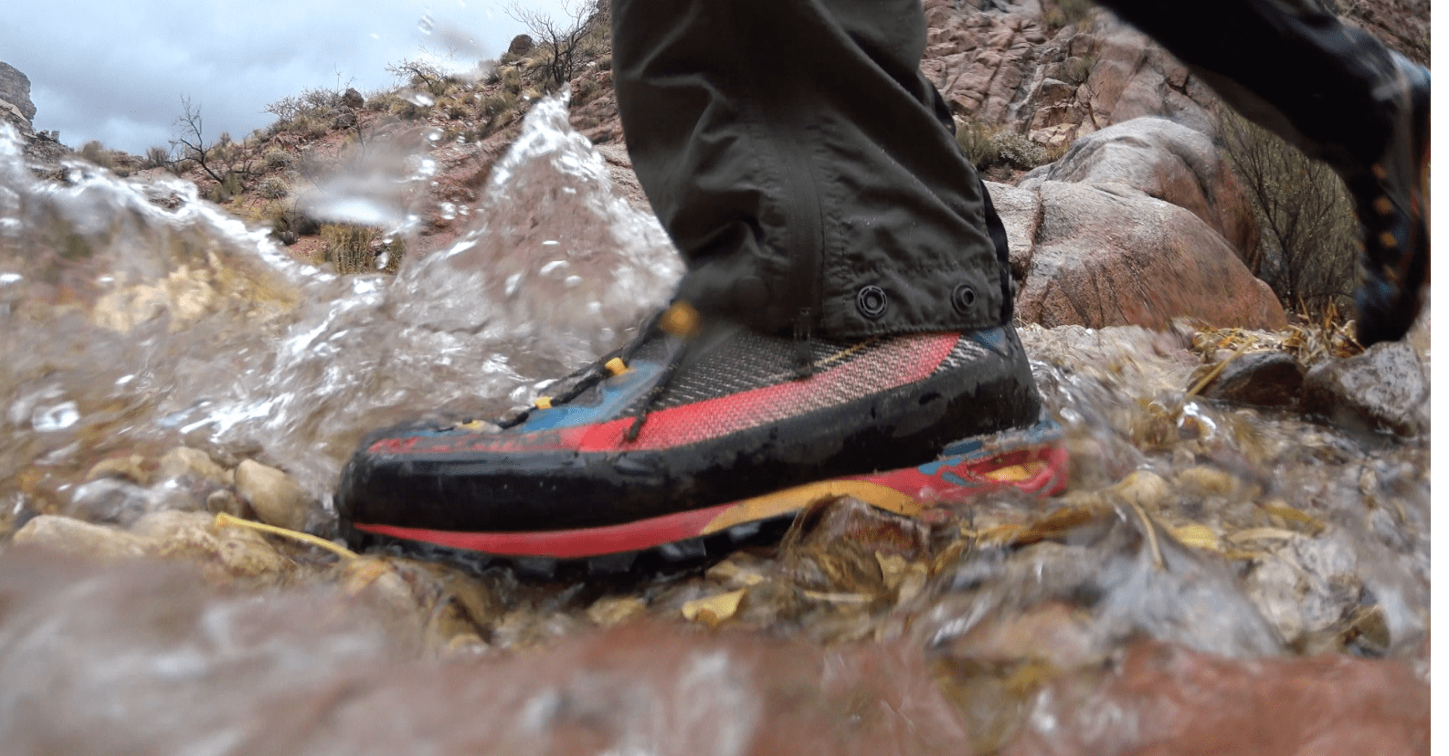 Laminated membrane jackets and boots rely on an internal layer like GoreTex, eVent, or a myriad of other similar technologies to repel water while still remaining breathable. That high-tech layer resembles plastic film and contains millions of tiny pores small enough to keep big droplets out, but large enough to permit body vapor to escape. That thin film is so delicate it has to be bonded to a heavier layer and then placed inside a boot, jacket, or other technical piece. Think of it as waterproof underwear.