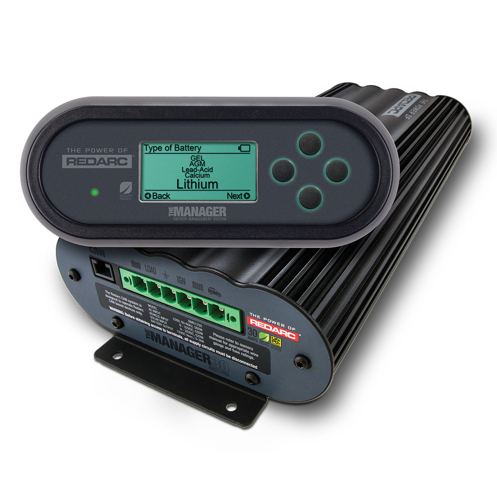 In the years since, the Manager30 has only been available in Australia, installed in applications like trailers and complex integrations like the Hema Map Patrol. However, in early 2019, RedArc decided to import the product to North America, configured for our applications, like 110 volt. Out of the box, it includes the main charge controller and a remote mountable battery monitor display. For most overland applications, it will also be appropriate to purchase the BMS Load Disconnect Isolator (SBI12-BLD) that will permit a remote operated joining of batteries for winching and self jumpstarting. Appropriately rated wiring (400amp @ 12v) and fusing will also need to be sourced.