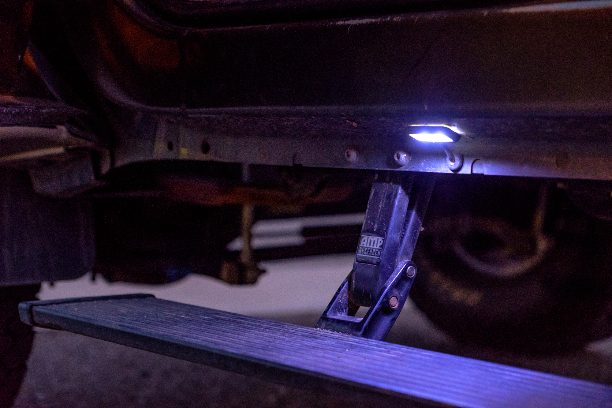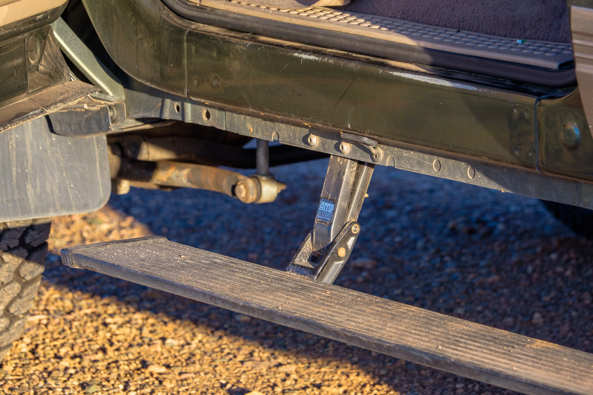 The extension and retraction cycles are smooth, with well-thought-out features like rubber pads to eliminate noise and vibration when the steps reach their stops in either the open or closed positions. Another nice touch is the lights; although not entirely necessary in places like cities, they were welcome additions in the backcountry on late night runs and camping trips. All of this was convenient and added to our enjoyment of the steps, but we were most curious if they would retain our vehicle’s breakover angle on the trail, and how they’d handle constant abuse from mud and corrugated roads.