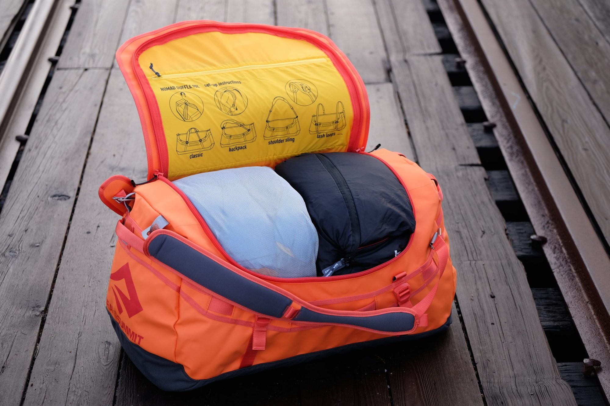 Whereas other bags have rectangular or rounded shapes, Sea to Summit sculpted their duffle with a wide base and a slightly narrower top. The trapezoidal stance keeps the bag from tipping over and allows for larger/heavier items to settle towards the bottom. The real star of the show is the massive opening secured by a beefy double-tracked zipper secured by two large slider toggles. With the wide base and large lid, it opens like a trunk exposing its cavernous interior. Better yet, the lid aperture is large enough it stays open when I want it to, unlike most other bags which have the irksome habit of continually slamming shut.