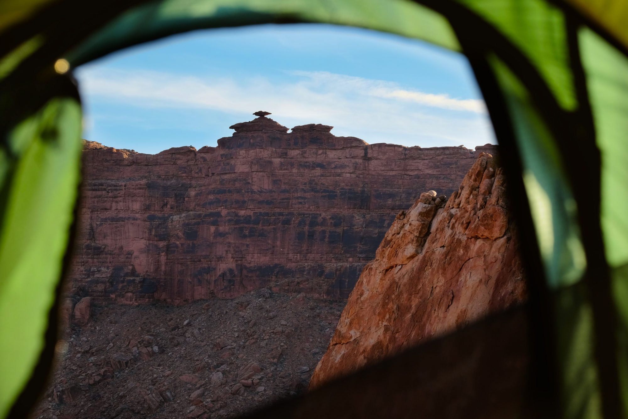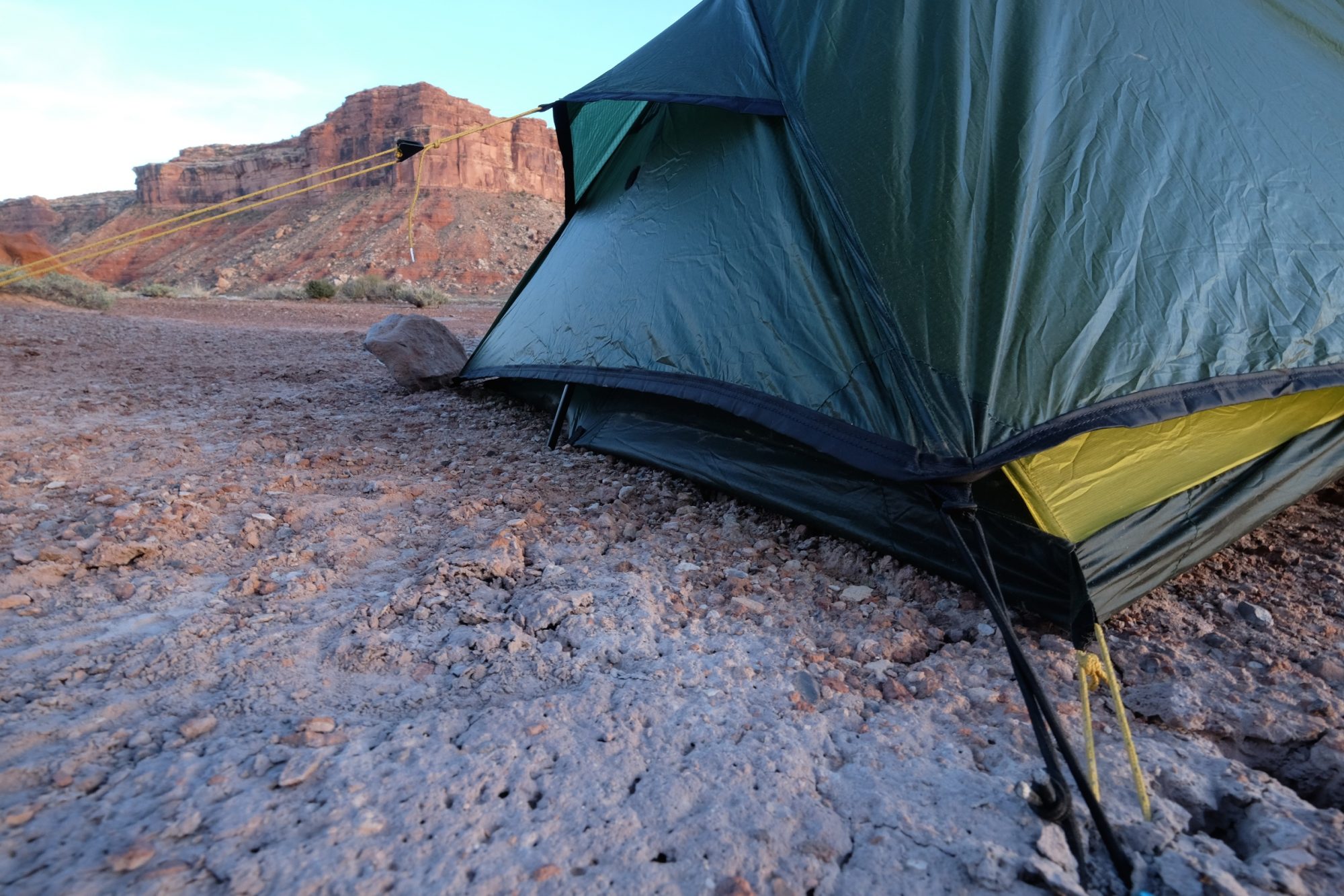 Spring in the desert can be relentlessly windy. With that comes blowing sand, the bane of high desert camping. Although the entire door of the Solar Photo is mesh, the walls are solid nylon. By pitching the tent in favor of the wind direction, I can position the door to defend against the ingress of sand. The desert can also get plenty chilly at night, with my most recent trip flirting with freezing temperatures. The rainfly extends close to the ground helping once again to thwart sand, but also to shut out cold drafts.