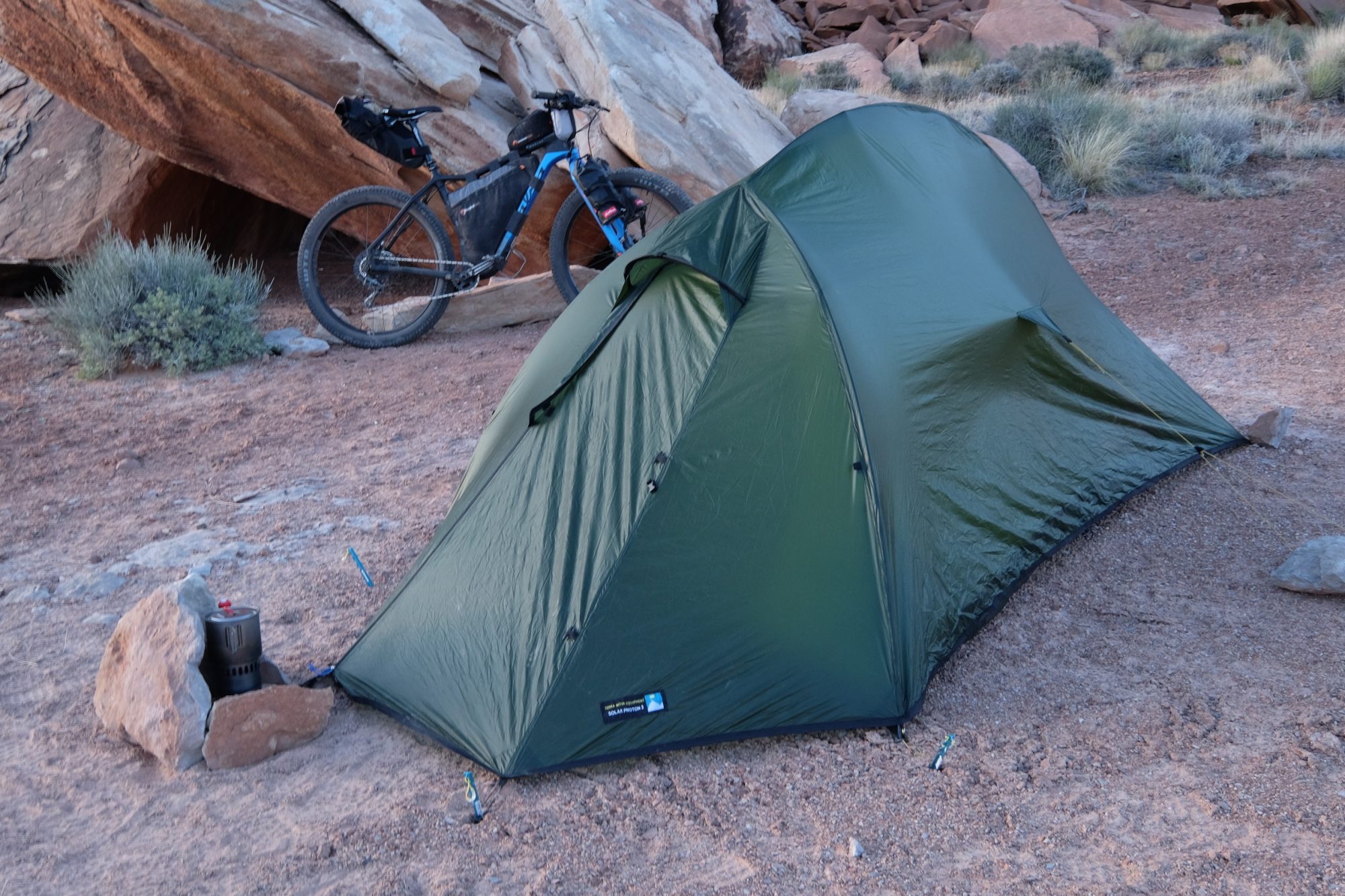 If I am anything, I am fussy about my gear, particularly my sleep shelters. The Solar Photon ticked a few of boxes my seemingly endless list of wants. It has a tiny packed size thanks to the gossamer weight of the fabrics. The pole sections are small making for easy portage in my bike’s frame bag. The vestibule is large enough to make for a comfortable reprieve when sitting out big storms and most importantly, mesh is kept to a minimum. That sounds counterintuitive for a tent I planned to pit against the desert, but I have my reasons.