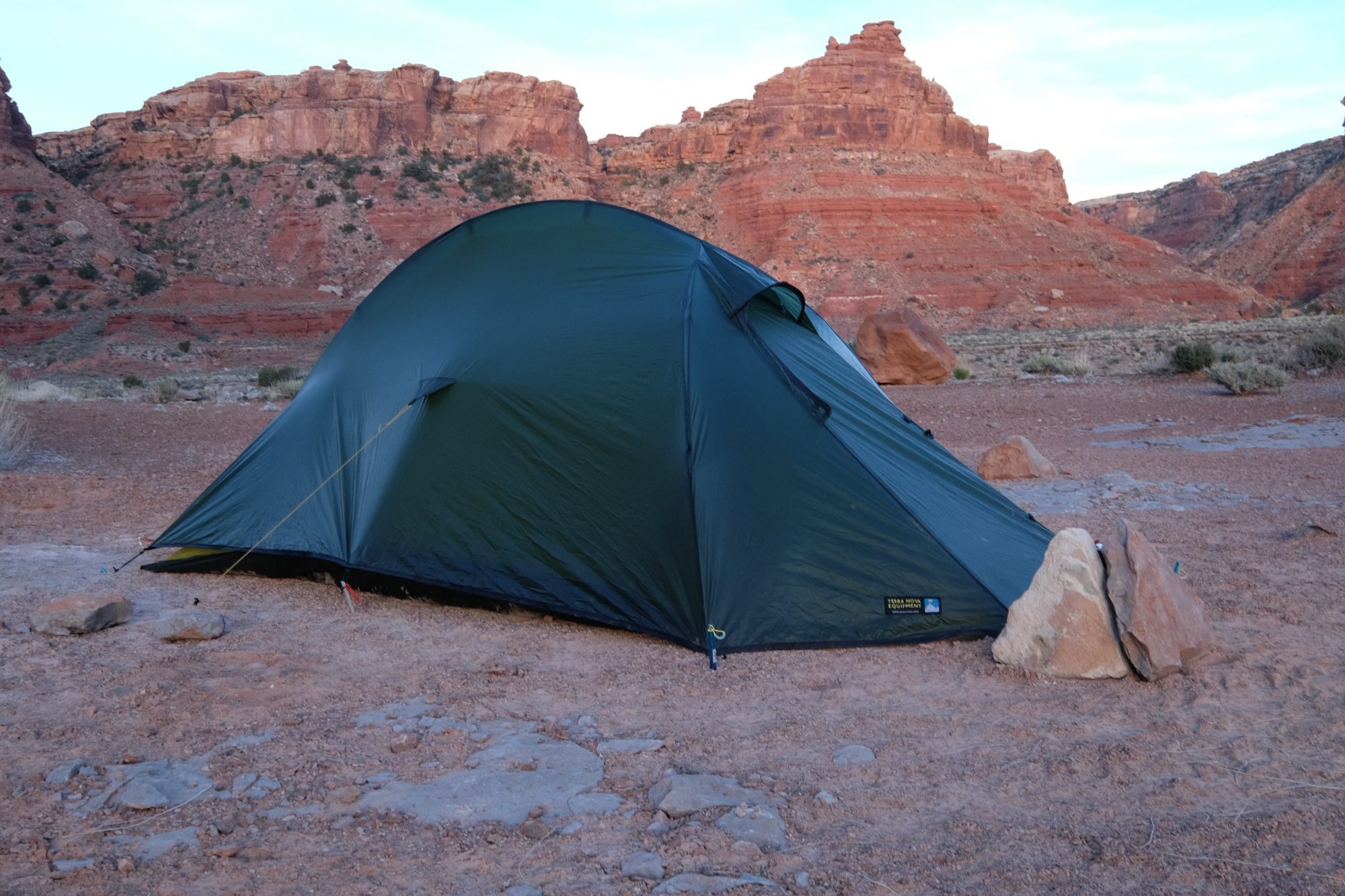 As much as I love the Laser Comp 1p, the hoop design can be a little tricky in the Southwest where hard earth foils the most ambitious tent pegs. I also wanted a little more elbow room for outings when my wife joins the adventure. After a quick consult with Terra Nova’s American-based distributor, I decided to give the Solar Photon 2P a go.
