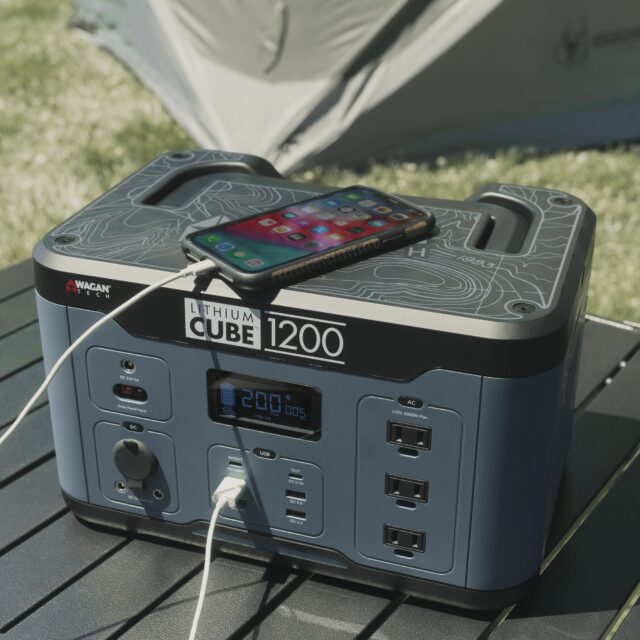 Competitively priced, the Cube 1200 is a user-friendly 1,000-watt inverter seamlessly paired with a 1,166 watt-hour lithium-ion battery which can easily power multiple laptops, a fridge, medical equipment, or even a TV. The Cube is portable, compact, and attractive. The display is easy to read and understand, displaying battery power, wattage used and absorbing, and hours remaining to charge or discharge. Being a lithium battery, the Cube can be stored and used in any orientation as long as vents are open, handy when space is at a premium. On full charge, the Cube is extremely effective and, in our experience, can last up to five days powering three laptops, four smartphones, and a Snomaster fridge (while charging a USB lantern and rechargeable batteries), without draining below 30 percent (with input from a 100-watt solar panel or 12-volt vehicle power supply).