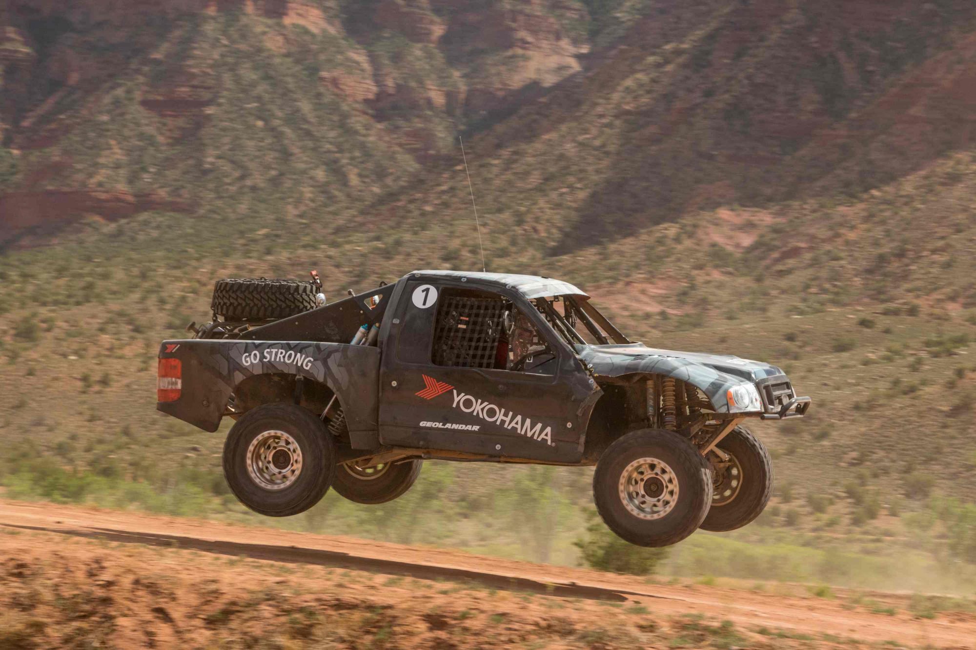 Anticipating the launch of Yokohama’s latest entrant to the mud-terrain genre, the Geolandar M/T G003, we headed to Gateway, Colorado, for a couple of days of traversing the region’s back roads. Phase two found us carving hard turns and leaping off high-speed jumps on a Baja-style racecourse, followed by a morning of spirited driving on two-lane highways along the Dolores River.