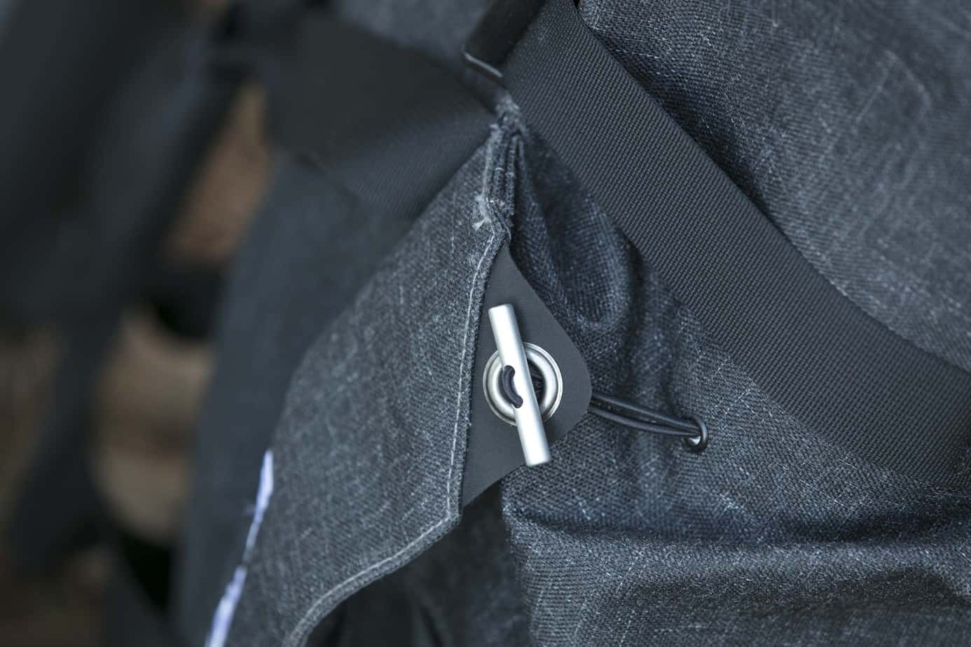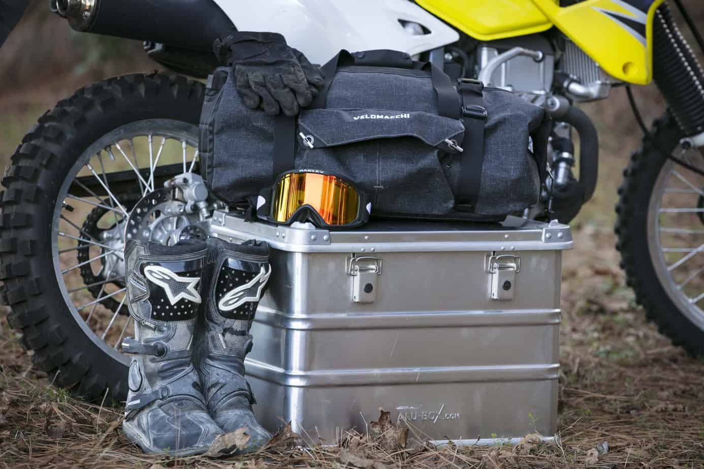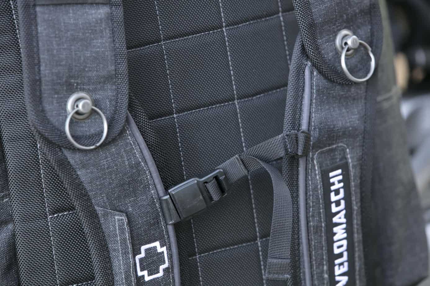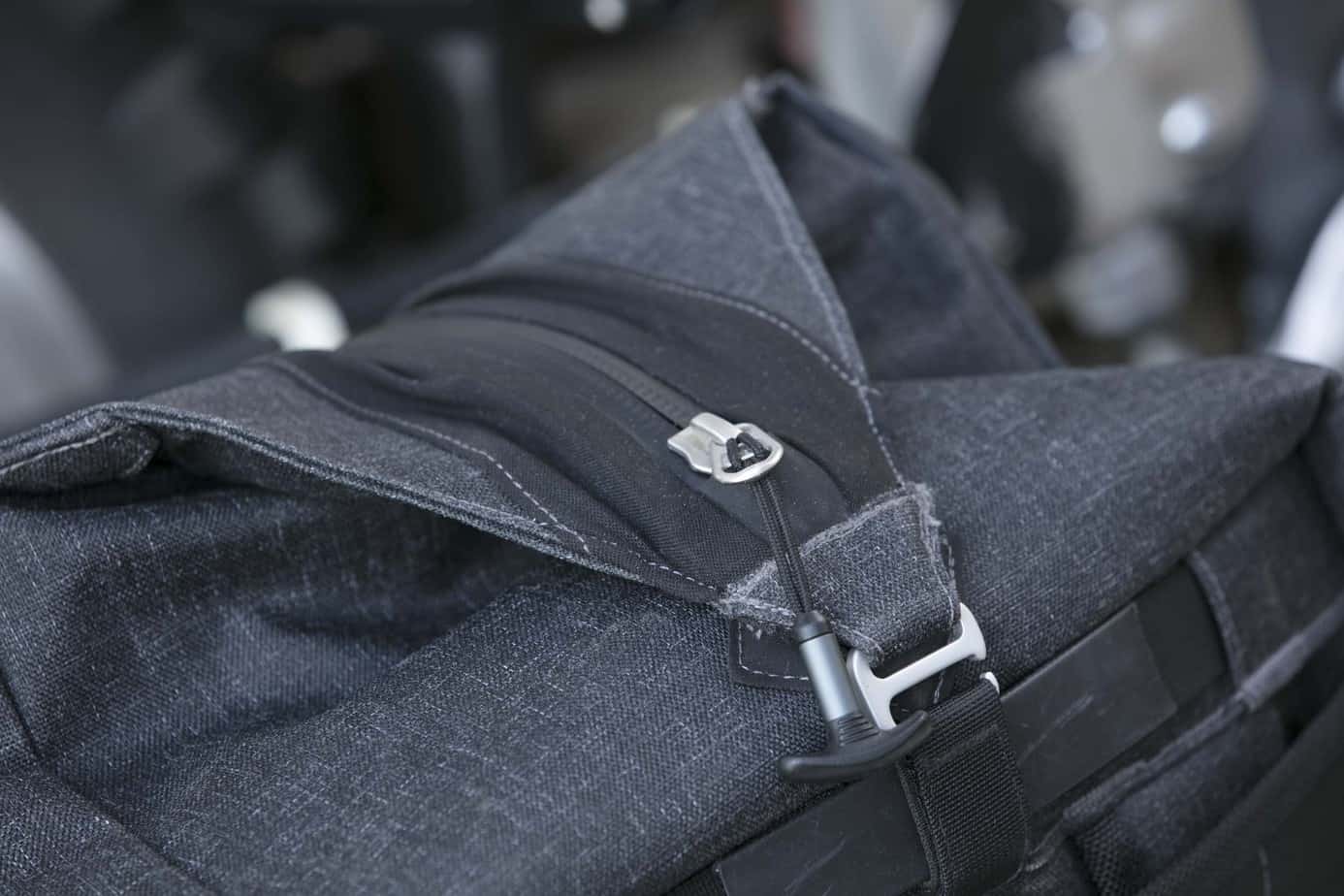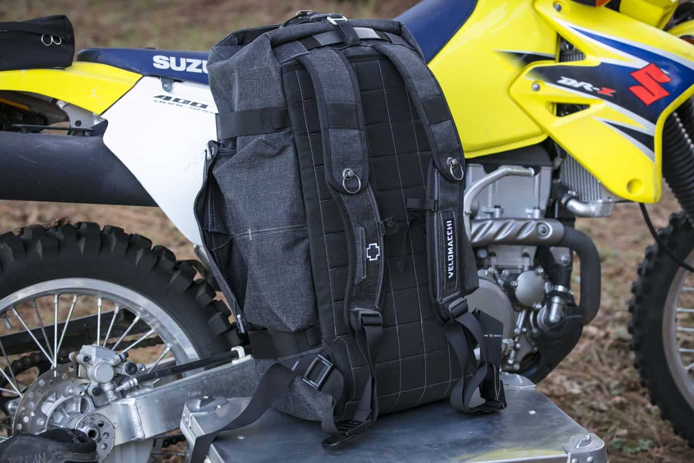 Last year I picked up a Velomacchi Speedway Hybrid 50-liter duffle and have since utilized it during a variety of trips. My first impressions were that the 1000D exterior fabric and rubberized YKK #10 zipper would do a great job of keeping my clothes dry, and they have. Dual compression straps cinch things down enough for the Speedway to be used as a carry-on, and also proved lashing points for securing it to the back of a bike or on a roof rack. The sturdy shoulder harness, which is wide enough so as to not cut into my clavicle, features cam-lock adjusters and a magnetic sternum strap. I like that both the shoulder and carry straps tuck neatly into pockets, thus reducing the possibility of snagging. Velcro pockets frame both sides, and the zipper’s T-handle is easy to grasp with gloved hands.