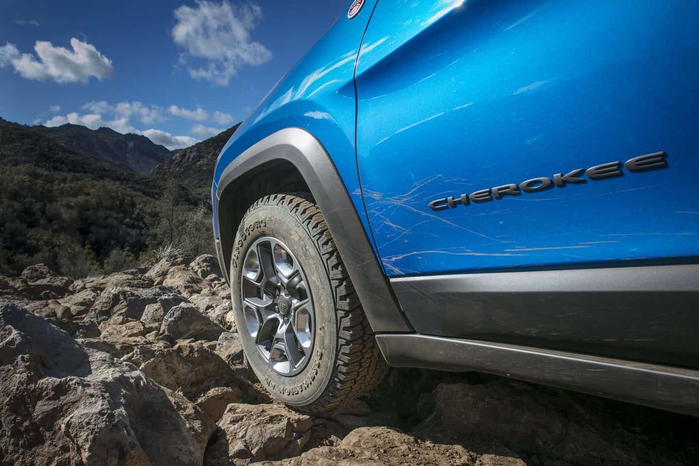 There are three 4WD systems, Active Drive I, Active Drive II, and Active Drive Lock. A big plus is that Active Drive Lock features a fully locking, eclectically activated mechanical rear differential. While modern traction control systems work exceptionally well (Jeep calls theirs Selec-Terrain), when doing technical trail work you just can’t beat a true locker. The Cherokee has retained a proper 2-speed transfer case with an impressive 2.92:1 low range ratio. Combined with the 4.71 first gear of the transmission and 3.17 ring and pinion, the Trailhawk sports a respectable 52:1 crawl ratio when equipped with the 2.0-liter turbo; 48:1 with the Pentastar.