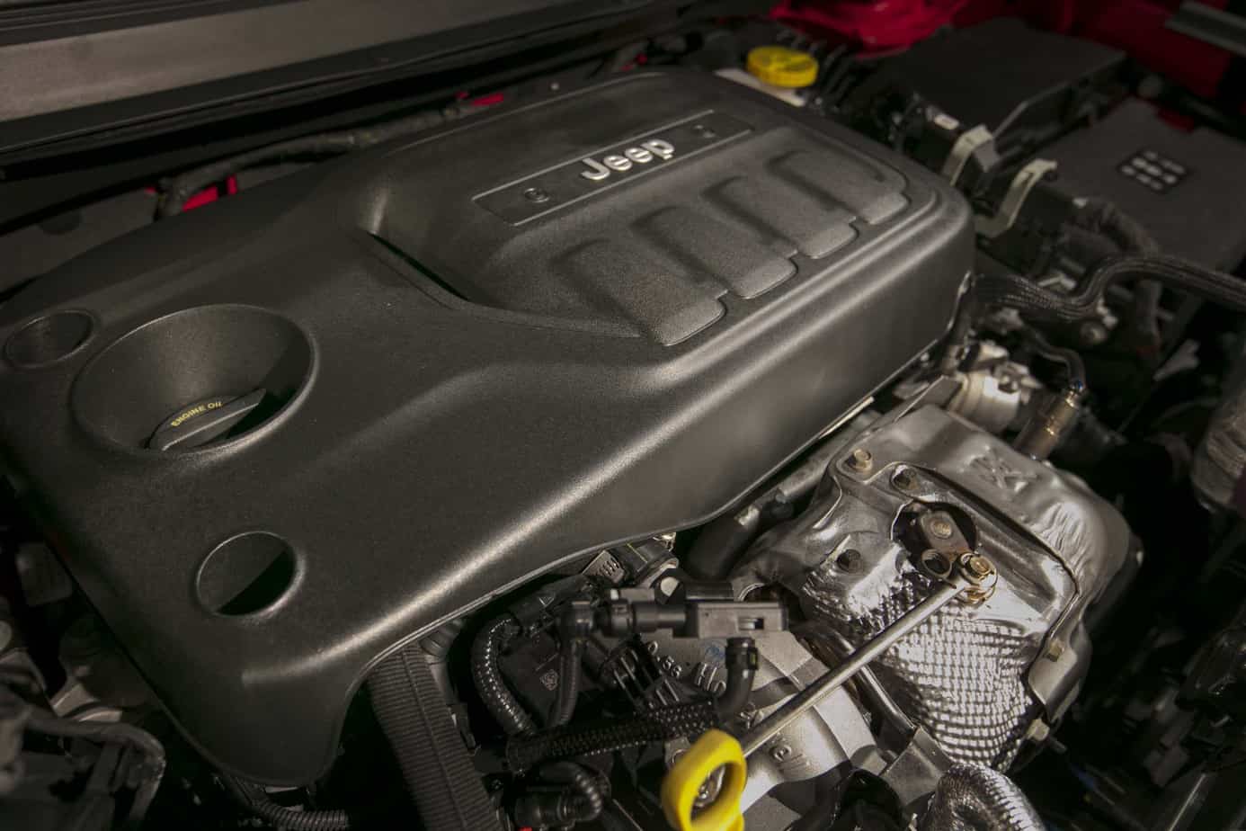 Interior trim and ergonomics have also been enhanced, and instruments are in clear view, and controls at arm’s reach. The console is now more spacious, there are additional USB and 12-volt power ports, and the Gen IV Uconnect nav/audio panel is available with an 8.4-inch touchscreen. While the Uconnect WiFi hotspot is not new, it now features 4G connectivity and Apple CarPlay and Android Auto pair with nearly any smartphone. Managing the four-wheel drive system is accomplished via a console-mounted dial. There are five modes: auto, snow, sport, sand/mud, and rock, and buttons on top activate the locker crawl mode.