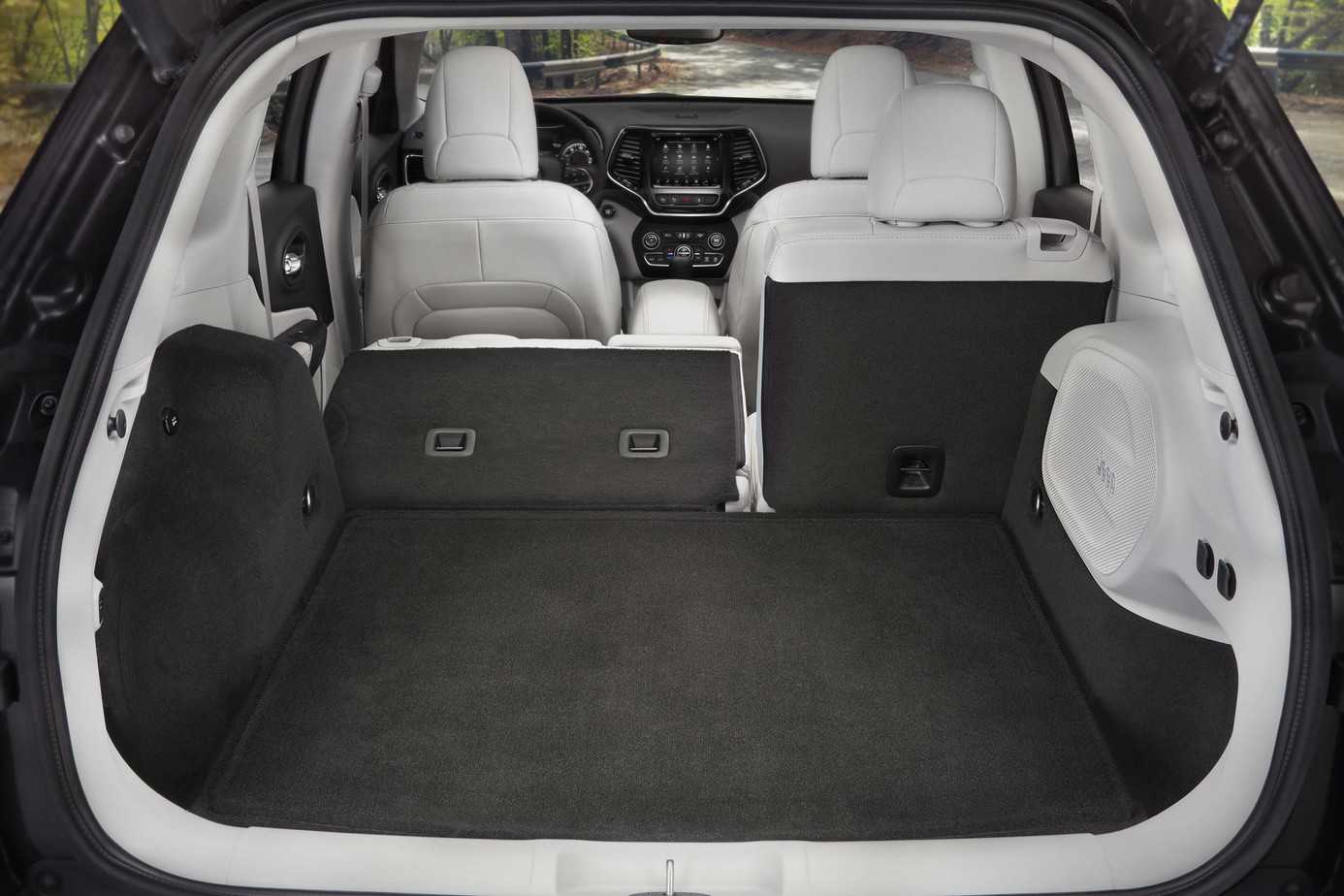 A walk-around reveals a full lineup of LED lighting (head and fog lamps, taillights, and running lights) complementing redesigned bodylines. The combination hood/grille now has a slight roll-down appearance, and the headlights sit a little higher and wrap from the fender to hood. Opening the hands-free liftgate exposes an enlarged cargo bay and 60/40 fold-down rear seats, which receive plenty of light through the dual-pane sunroof. I’m not a golfer, but Jeep boasts that you can now set your clubs in sideways.