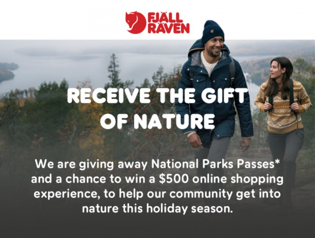 This holiday giveaway runs from Nov 20th through December 15th. In addition to the National Parks Passes, Fjällräven is also giving away two grand prizes of $500 store credit for in-person or virtual shopping experiences. While you can still gain entries for this contest by visiting a physical store, Fjällräven has adopted a Blockchain technology-based approach to this contest and is utilizing their pre-existing interactive online platform where participants can earn digital coins known as Fox Coins. The more Fox Coins you earn, the higher your chances of winning. Participate in the contest for free here.