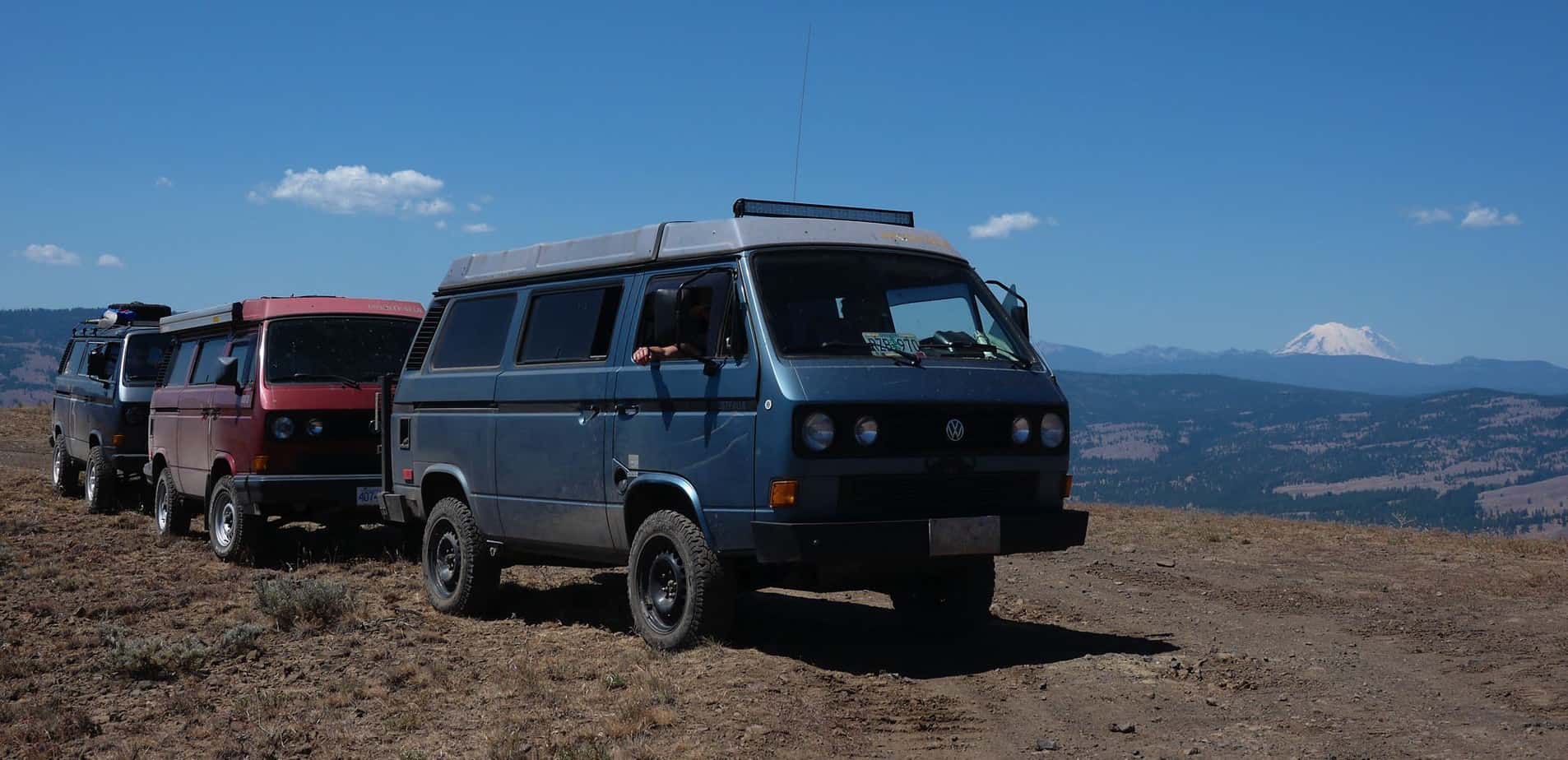 Each vehicle in our caravan was completely unique, yet still maintained the classic characteristics of the Volkswagen Syncro. Two of the vans began life as 2WD Vanagons, one a passenger van, the other a Weekender camper with pop-top but extra seating and lounge space instead of the built-in kitchen. Both were converted to 4WD Syncros by their owners and fitted with more powerful and modern Subaru motors.