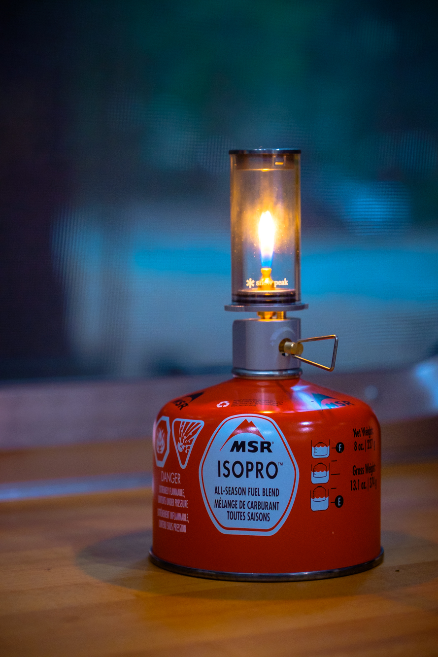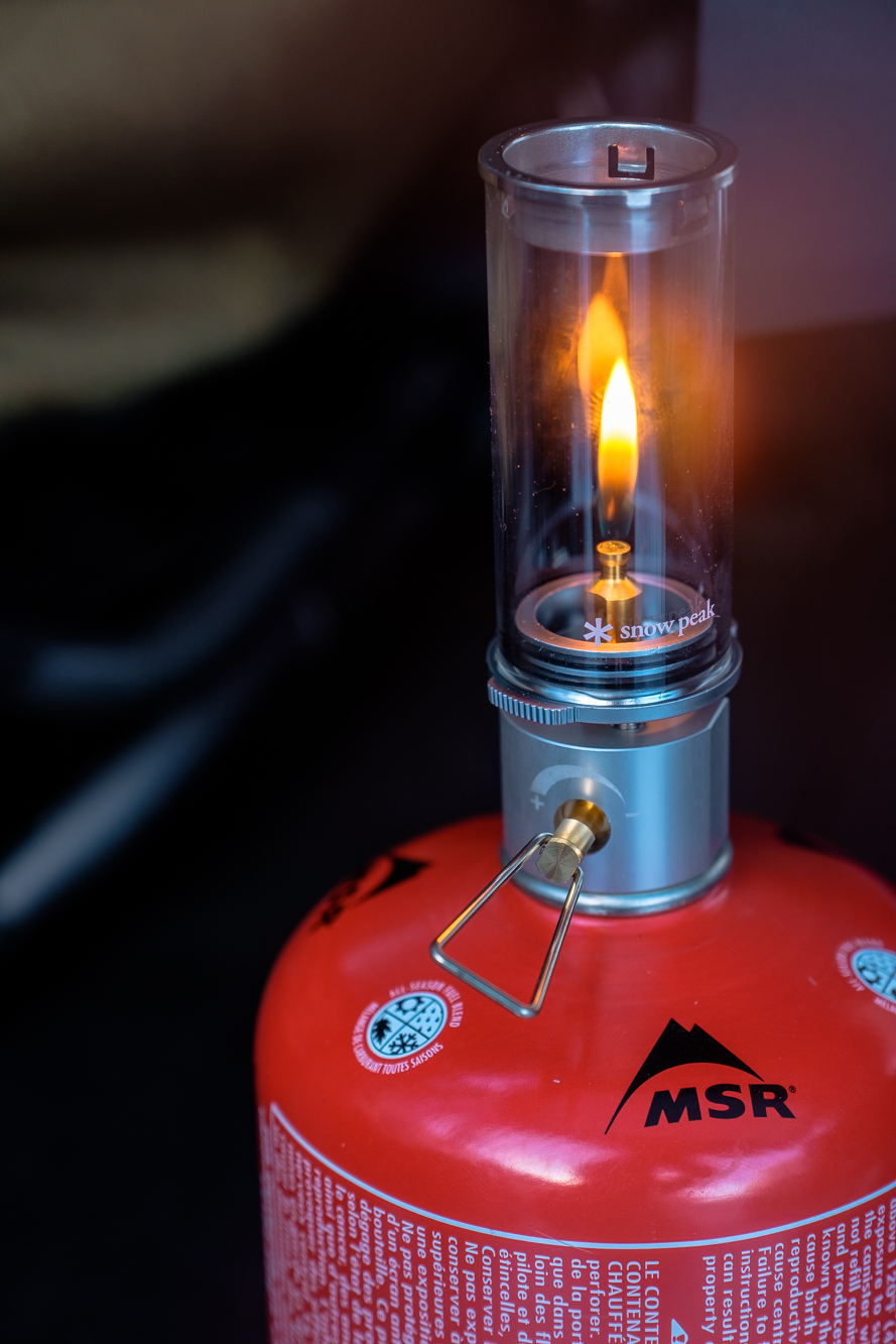 As you’d expect from a Snow Peak product, it’s well made, really cool, and more than a little unnecessary, yet I purchased this product all the same and don’t regret it. It threads onto a fuel canister, and once turned on, slowly fills the glass chamber with gas. Yes, glass chamber. It comes with a small padded tube for protection. Using a lighter or match, you can ignite the flame and watch as it slowly burns off the last of your propane. A twist valve at the bottom operates with satisfying smoothness while adjusting the size of the flame for burn rate and amount of light given off.