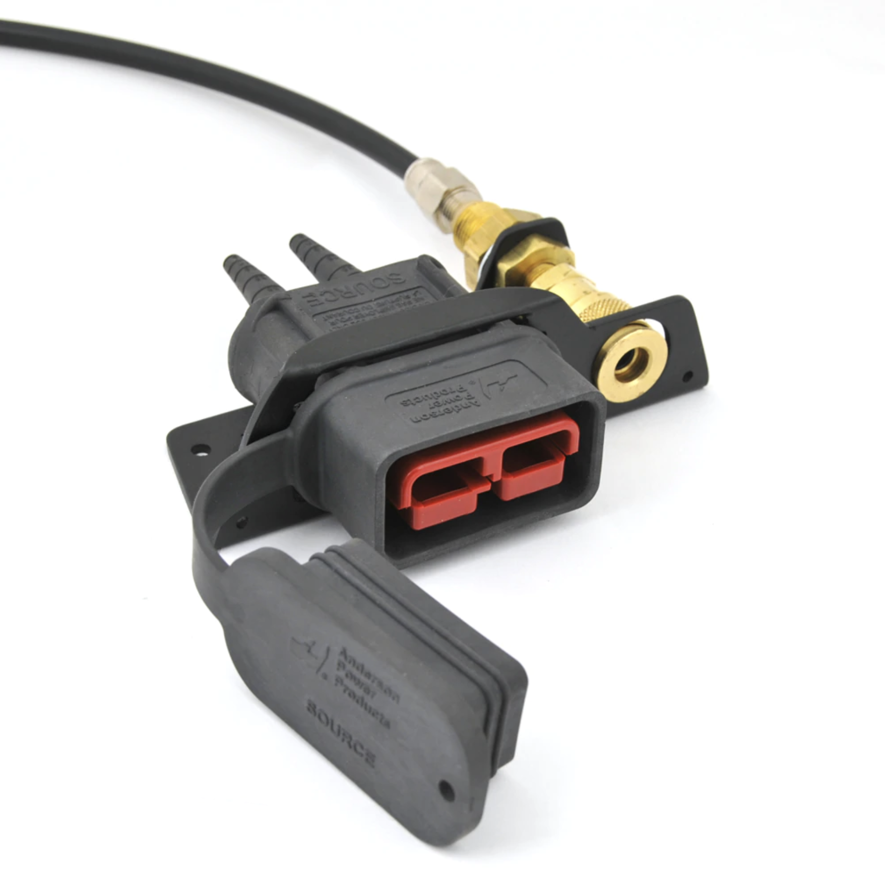 You know how most companies make a product and then throw some cheap hardware in as an afterthought? Well, that is where Wit’s End comes in. They are the barons of brackets, the wizards of wiring, the magnates of mounts, and the kaisers of couplers. They specialize in the detail work that is so often ignored, creating some of the most beautifully machined and finished components that I have ever seen. The downside? This work doesn’t come cheap, and I was left wondering if it would be worth it. To find out, I ordered up one of their air coupler and SB175 brackets. This combination bracket includes a slot for an SB175 hi-amperage power port as well as a space for a quick-connect air coupler. Since I had recently received an Extreme Outback Magnum compressor, this was the perfect way to plumb it through to my front bumper.