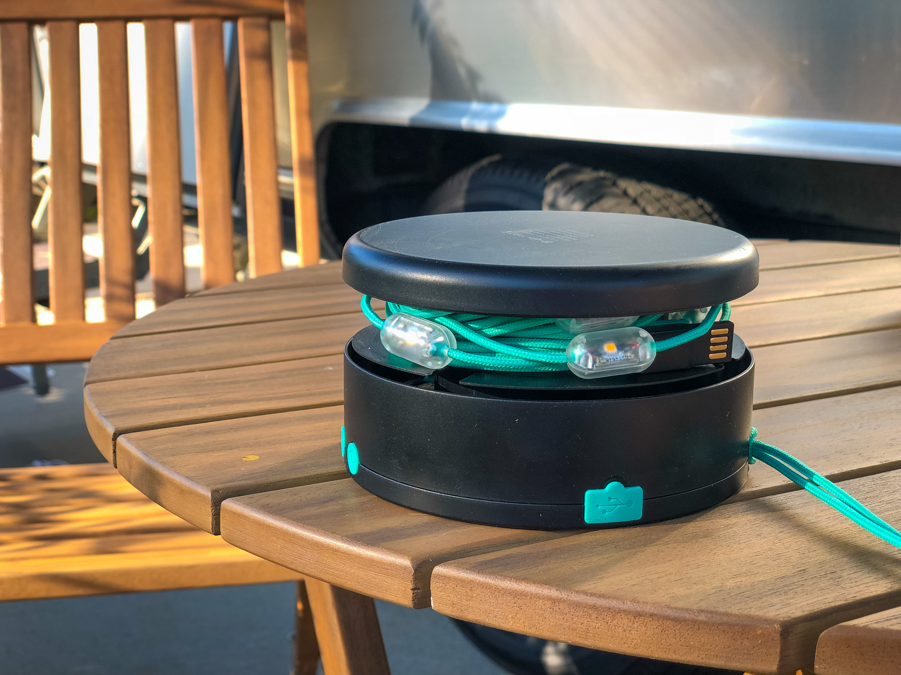 Like the original lights, the string lights are completely solar powered, but they can also be charged via USB cable in your car in inclement weather. The product consists of two main components: an ABS plastic base with a built-in solar panel, and an 18-foot strand of nylon braided cord with LED nodes. The light strand contains a total of 10 nodes, each with two lights that face opposite directions for universal and even coverage of your entire camp. Special clips along the cable allow you to tie it off to just about anything, which is a lifesaver when trying to hang them on awnings and vehicles. Although this cable isn’t completely waterproof, it is IPX4-rated splash resistant.