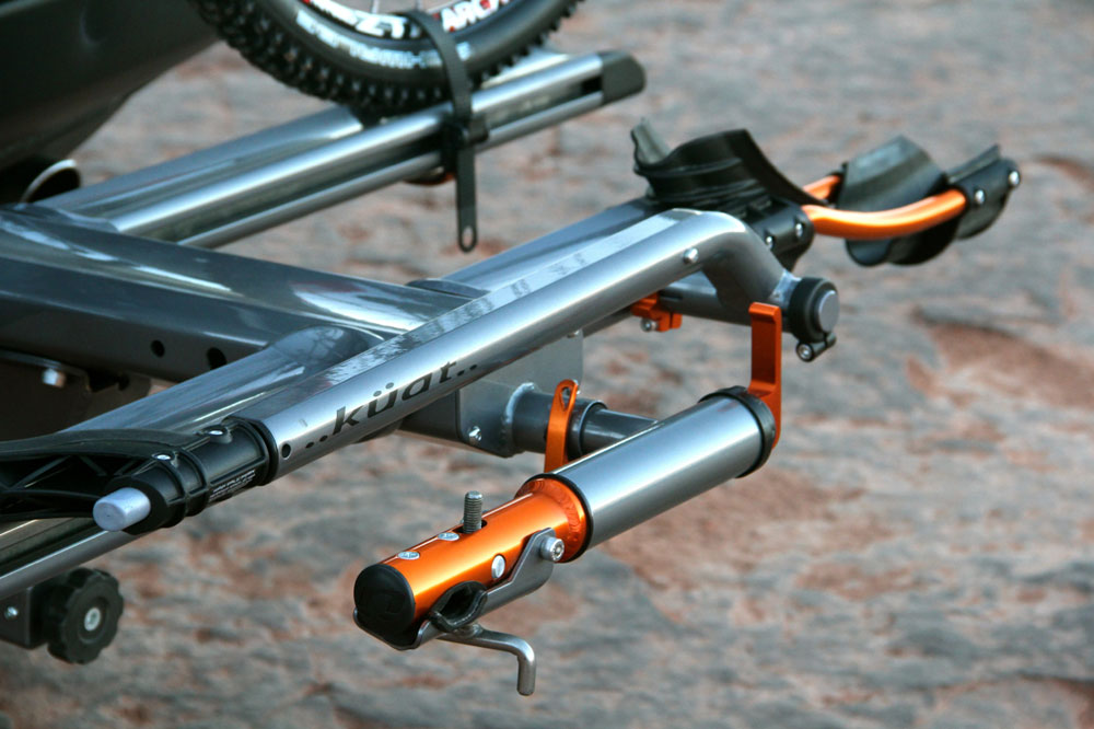 Perhaps the most unique feature of the Küat NV is the addition of the built-in Trail Doc repair stand. It would have been all too easy for Küat to throw together a cheesy repair stand just to say they had such a feature, but they didn’t take that shortcut. The Trail Doc is a legitimate stand with a well developed clamp actuated by a simple cranking lever. Now trailhead repairs are easier than ever. With ample adjustment, the Trail Doc holds the bike in just the right position and rotates out of the way when not in use.