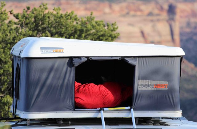 In 2010 I attended a local 24-hour mountain bike race, pulled into the sprawling campground, and set up my roof top tent. Judging by the pointing fingers and curious looks, you’d have thought a UFO landed on my truck. Fast forward to 2017, and the roof top tent is not just commonplace, it’s rapidly becoming a must-have for adventurers of all kinds. It is hard to count the number of soft shell tents cropping up on the market, but the more rarified air of the hard shell tent has not seen quite as many newcomers. As we knew it would, that is changing. The latest hails from Boulder, Colorado, and is appropriately named Roofnest.
