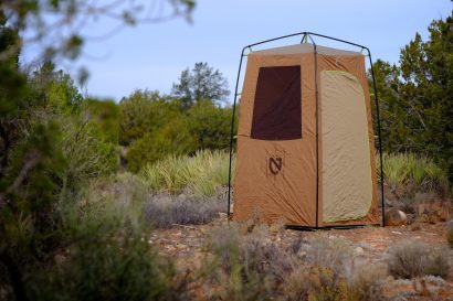 The search has ended for the best backcountry shower shack.