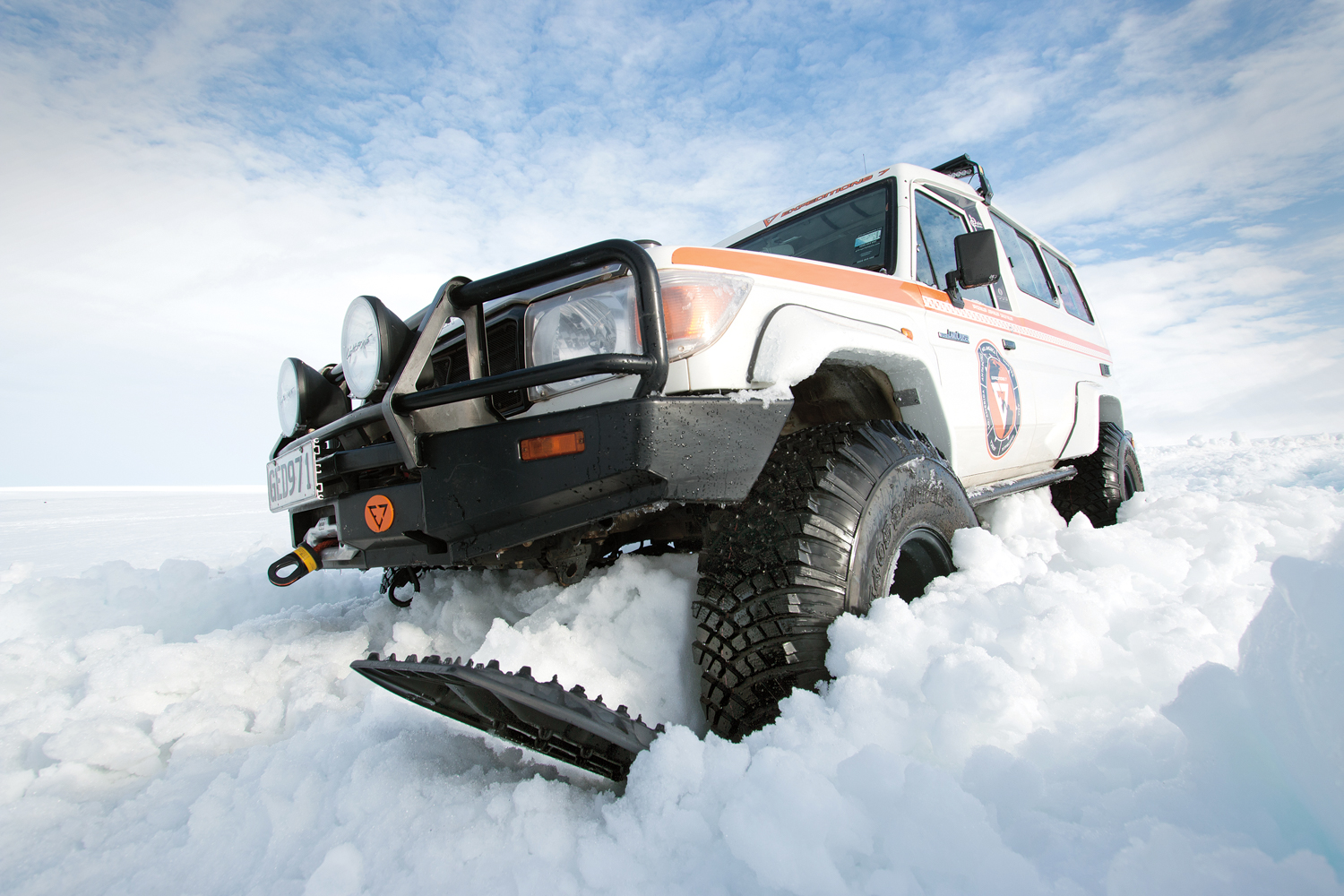 Measuring 45 inches long and 13 inches wide, they can stack in a pair for a 3.5-inch profile. Made in Australia from UV-stable, engineering-grade reinforced nylon, each track only weighs 7.5 pounds and can be carried by one of the six built-in handles. One of the key design elements is that both ends of the MKII are tapered for ramping of the tire and reducing pop up and shifting in the obstacle. There are a few unique attributes to the Maxtrax, including accessory key slots for mounting and linking, and the availability to purchase the units in extreme cold weather compounds to resist cracking all the way down to -40°F, a function we tested on the eastern coast of Antarctica.