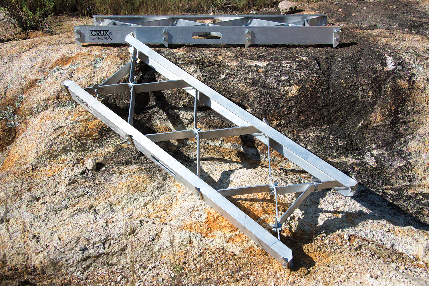 Bridging ladders should perform equally well in the sand and as a bridging device. Their additional bulk and weight are easily justified if this tool is required for your intended terrain or vehicle capability. This is a serious piece of kit, suitable for rescue from axle-deep mud in Siberia or sketchy dugout canoe ferries in Bolivia as you load your beloved 4WD from eroding riverbanks. Impressive when called upon, they come at the cost of space and GVW.