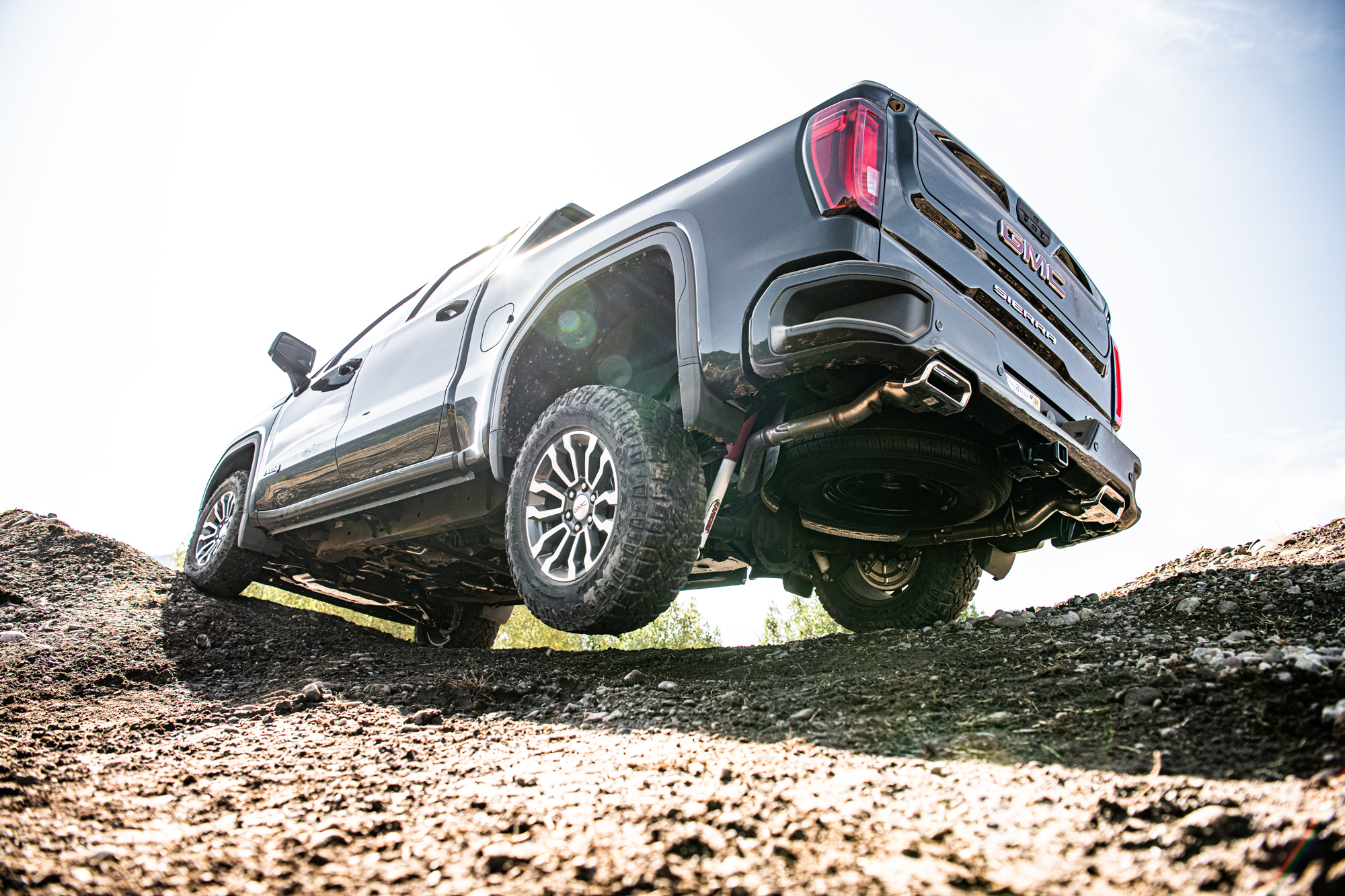 Although this article is largely focused on the 3.0L Duramax, I wanted to make note of a key suspension change that will impact all 2020 AT4s, and vastly improve them over the 2019 models. In my original review, I said that the Sierra AT4 was under dampened, which would lead to a sort of porpoising effect after large bumps or ruts. GMC apparently took that criticism back to the lab, because when I began throwing the new AT4 around on this drive, I found it behaved very differently. The suspension would compress and then rebound, but it returned to neutral quickly and smoothly afterward instead of continuing to cycle. Upon asking the engineer to elaborate on this shift, he informed me that the front coils were changed over to have a reduced side load, while the rear suspension received recambered helper springs that engage sooner than in the previous generation truck. The combination improved the responsiveness of the steering, eliminated the porpoising, and increased confidence while towing—all big wins for the AT4 and GMC customers.