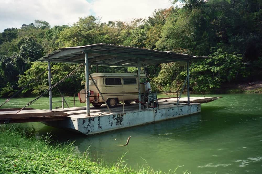 On top of the hill a small break in the foliage revealed a view of the vast jungle canopy. Through it we could see the main road and the forest headquarters. I never imagined the van could do it. But it did. We were exhausted as if we had run a marathon, but we made it. Relieved, we parked in the cramped yard of a basic campsite. Too tired to move or eat, we collapsed to sleep, knowing we were in for another ordeal in the morning.