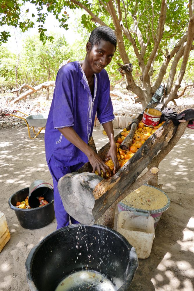 For me, it is much more important to mention that there are millions of cashew trees in Guinea Bissau. We are here at the right time (harvest time), but unfortunately, cannot buy any cashew nuts. They are either exported for roasting or consumed directly by the population. Only in the super-overpriced “supermarkets” (large rooms with shelves where you can find (if stocked) tuna cans, mayonnaise, ketchup, and the like), we sometimes see cashews—reimported cashews that are twice as expensive as in Germany.