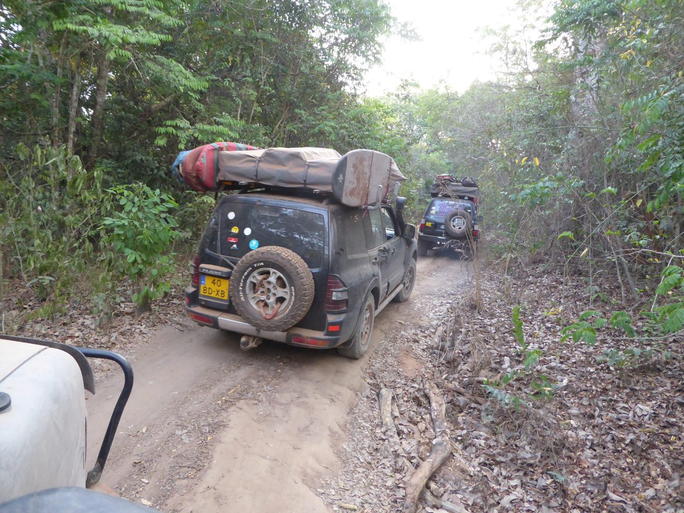 Tim’s surfboards attached to the side of his Pajero show signs of fighting, and the trees and bushes win this fight: some boards are damaged.