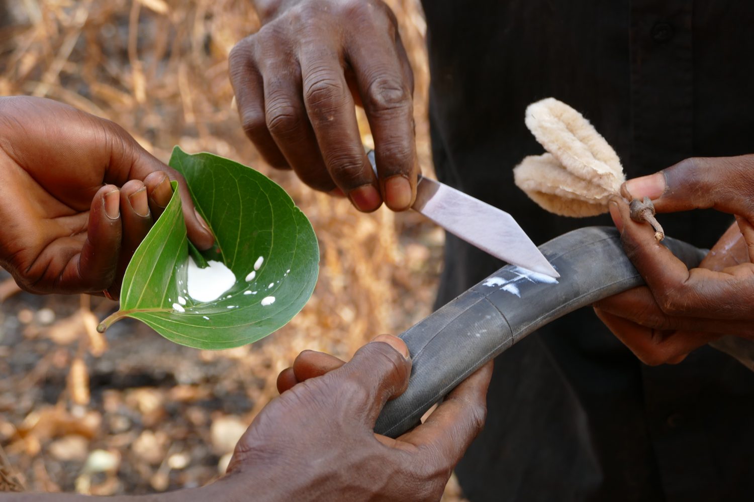 Eugene’s bike has a flat tire. But the jungle provides everything you need to live—even repair kits.
